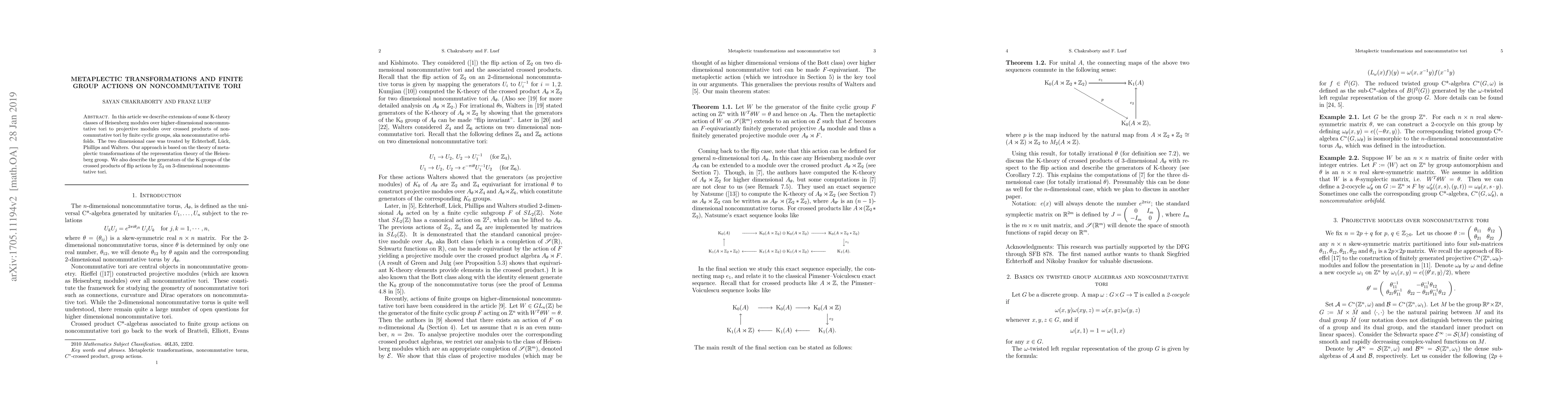 This paper extends K-theory classes of Heisenberg modules over noncommutative tori to crossed products by finite cyclic groups, using metaplectic transformations. It also identifies generators for the K-groups of flip actions on 3-dimensional noncommutative tori.