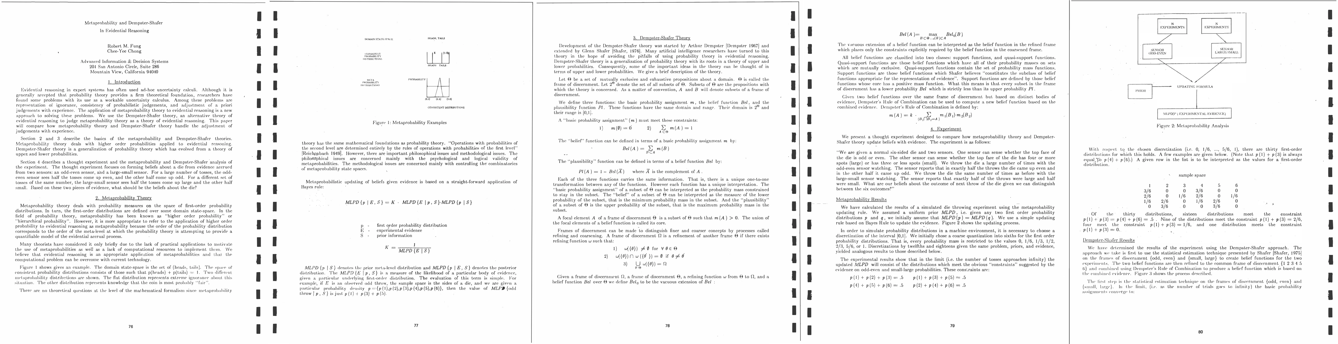 This paper explores metaprobability theory and Dempster-Shafer theory as alternatives to traditional probability theory for evidential reasoning, focusing on how they adjust beliefs with evidence. It compares both theories through a thought experiment involving a population with six types defined by three features, using two sensors to gather evidence on the features.