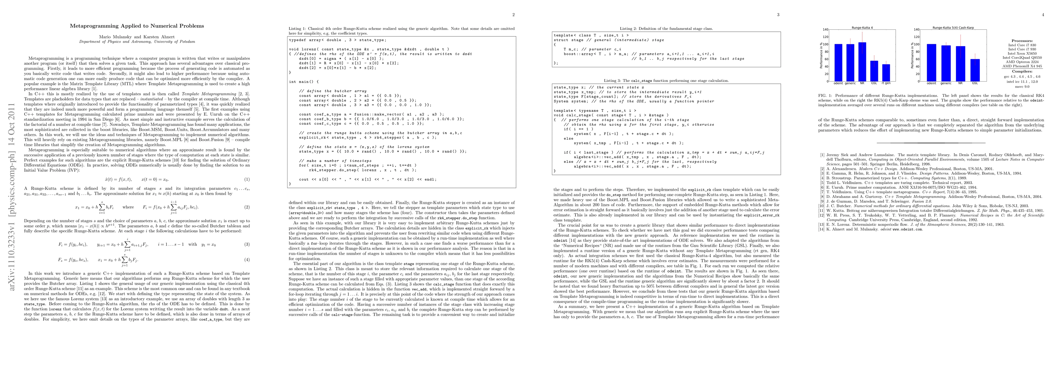 This paper explores the application of Template Metaprogramming in C++ to implement a generic Runge-Kutta scheme for solving ordinary differential equations, demonstrating significantly improved performance over traditional methods.