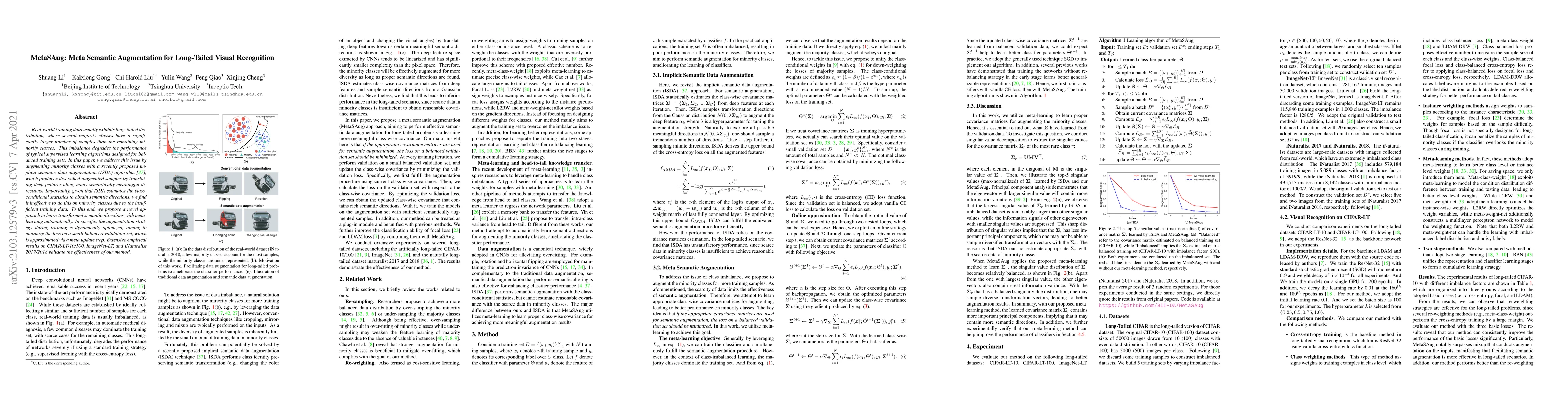 MetaSAug addresses the long-tail distribution in visual recognition by using meta semantic augmentation to dynamically optimize minority class samples, improving performance on imbalanced datasets. Empirical results show significant gains on CIFAR-LT, ImageNet-LT, and iNaturalist.