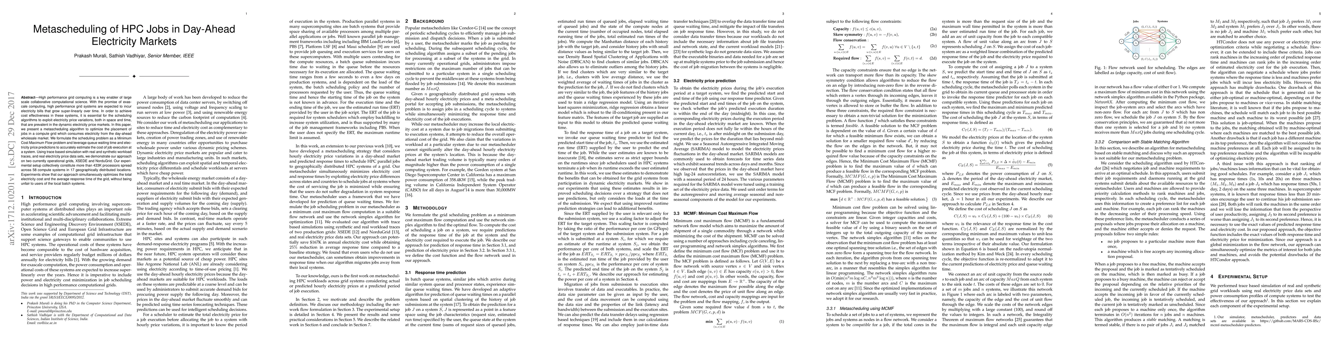 This paper introduces a metascheduling algorithm for optimizing high performance computing job placement in grid systems, considering electricity price variations in day-ahead markets. Using real and synthetic workload traces, and electricity price data, the approach demonstrates cost-effectiveness and reduced response time across over 433K processors in 17 distributed locations without disadvantaging local batch system users.