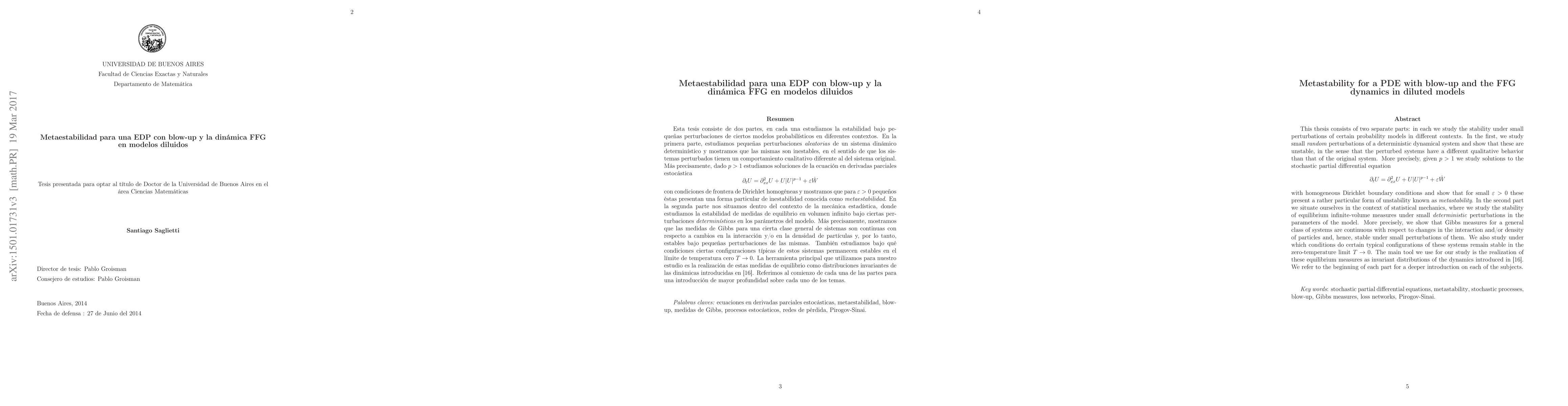 This thesis consists of two separate parts: in each we study the stability under small perturbations of certain probability models in different contexts. In the first, we study small random perturbations of a deterministic dynamical system and show that these are unstable, in the sense that the perturbed systems have a different qualitative behavior than that of the original system. In the second part we situate ourselves in the context of statistical mechanics, where we study the stability of equilibrium infinite-volume measures under small deterministic perturbations in the parameters of the model. More precisely, we show that Gibbs measures for a general class of systems are continuous with respect to changes in the interaction and/or density of particles and, hence, stable under small perturbations of them. We also study under which conditions do certain typical configurations of these systems remain stable in the zero-temperature limit.