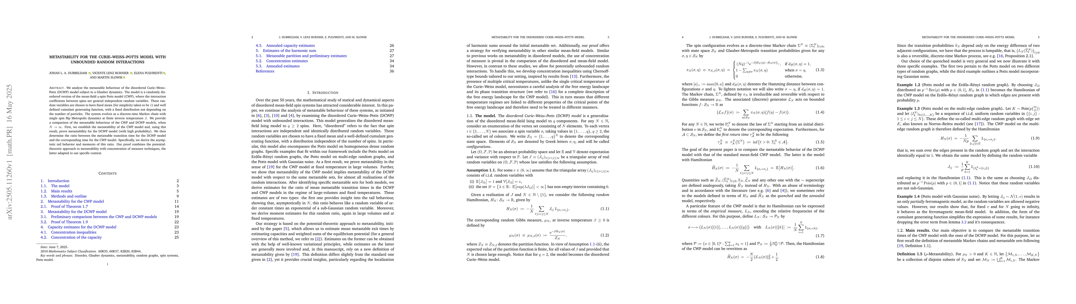 The research extends prior work on metastability in spin systems by considering unbounded random interactions, providing a detailed comparison between CWP and DCWP models, and deriving precise asymptotic behavior of transition times.
