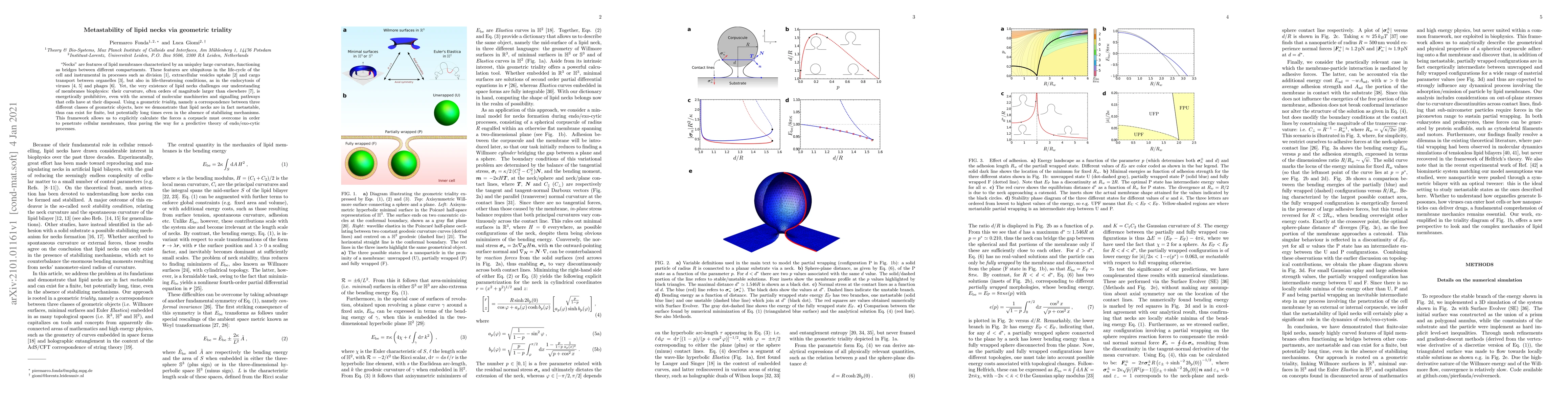 "Necks" are features of lipid membranes characterized by an uniquley large curvature, functioning as bridges between different compartments. These features are ubiquitous in the life-cycle of the cell and instrumental in processes such as division, extracellular vesicles uptake and cargo transport between organelles, but also in life-threatening conditions, as in the endocytosis of viruses and phages. Yet, the very existence of lipid necks challenges our understanding of membranes biophysics: their curvature, often orders of magnitude larger than elsewhere, is energetically prohibitive, even with the arsenal of molecular machineries and signalling pathways that cells have at their disposal. Using a geometric triality, namely a correspondence between three different classes of geometric objects, here we demonstrate that lipid necks are in fact metastable, thus can exist for finite, but potentially long times even in the absence of stabilizing mechanisms. This framework allows us to explicitly calculate the forces a corpuscle must overcome in order to penetrate cellular membranes, thus paving the way for a predictive theory of endo/exo-cytic processes.