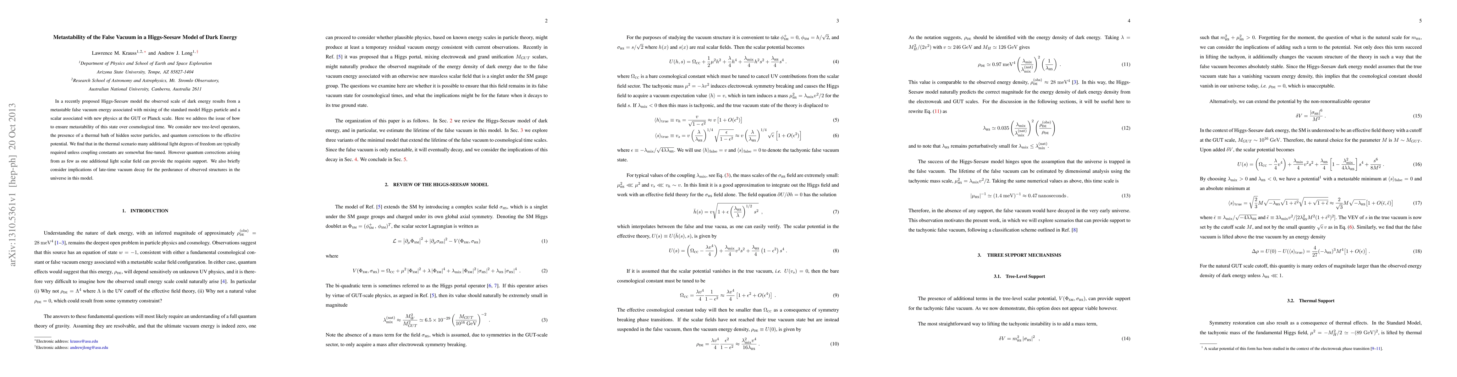 In a recently proposed Higgs-Seesaw model the observed scale of dark energy results from a metastable false vacuum energy associated with mixing of the standard model Higgs particle and a scalar associated with new physics at the GUT or Planck scale. Here we address the issue of how to ensure metastability of this state over cosmological time. We consider new tree-level operators, the presence of a thermal bath of hidden sector particles, and quantum corrections to the effective potential. We find that in the thermal scenario many additional light degrees of freedom are typically required unless coupling constants are somewhat fine-tuned. However quantum corrections arising from as few as one additional light scalar field can provide the requisite support. We also briefly consider implications of late-time vacuum decay for the perdurance of observed structures in the universe in this model.