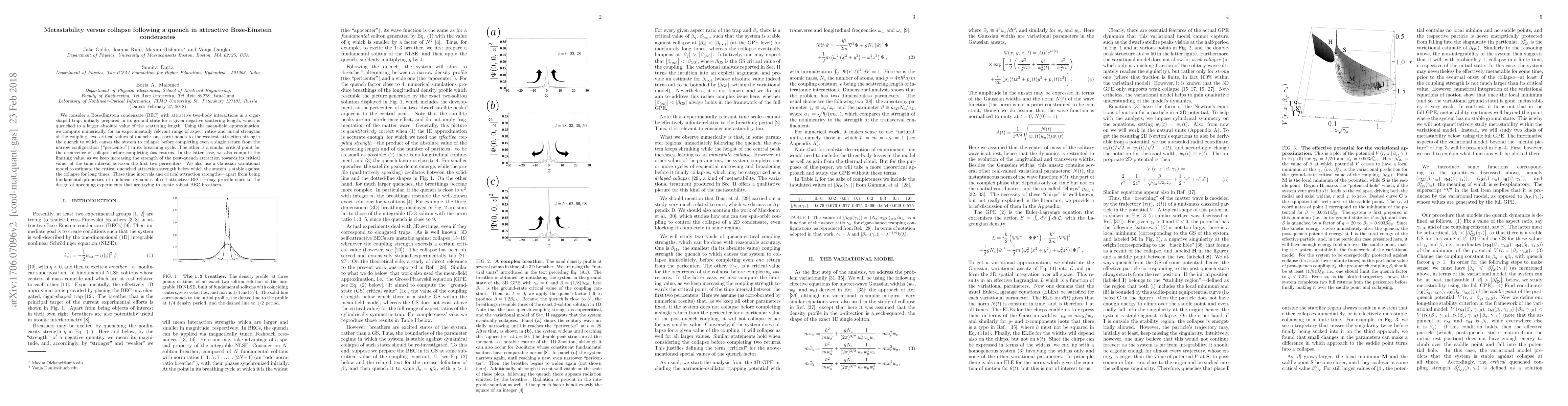 Researchers studied how attractive Bose-Einstein condensates respond to sudden changes in their interactions, finding critical points where the system collapses. They also developed a new method to estimate these collapse thresholds.