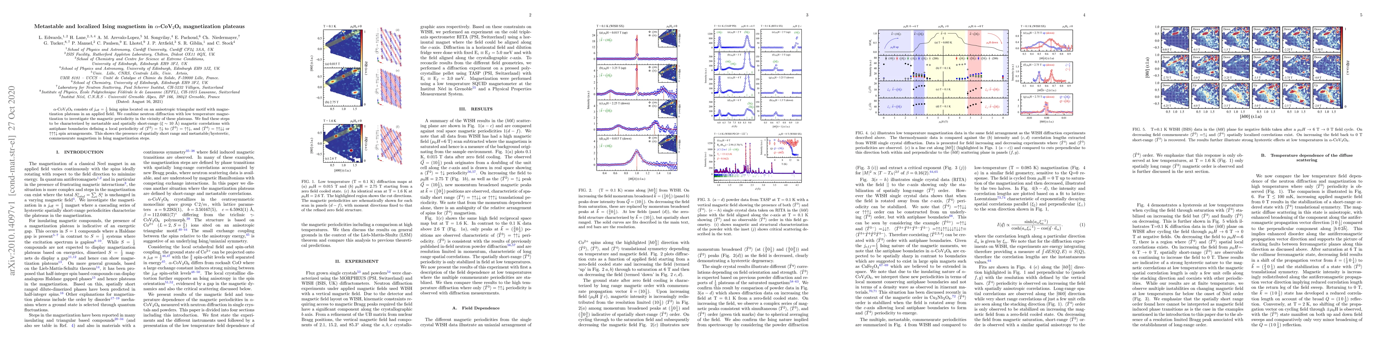 $\alpha$-CoV$_{2}$O$_{6}$ consists of $j_{\mathrm{eff}}={1 \over 2}$ Ising spins located on an anisotropic triangular motif with magnetization plateaus in an applied field. We combine neutron diffraction with low temperature magnetization to investigate the magnetic periodicity in the vicinity of these plateaus. We find these steps to be characterized by metastable and spatially short-range ($\xi\sim$ 10 $\r{A}$) magnetic correlations with antiphase boundaries defining a local periodicity of $\langle \hat{T}^{2} \rangle =\ \uparrow \downarrow$ to $\langle \hat{T}^{3} \rangle =\ \uparrow \uparrow \downarrow$, and $\langle \hat{T}^{4} \rangle=\ \uparrow \uparrow \downarrow \downarrow$ or $\uparrow \uparrow \uparrow \downarrow$ spin arrangements. This shows the presence of spatially short range and metastable/hysteretic, commensurate magnetism in Ising magnetization steps.