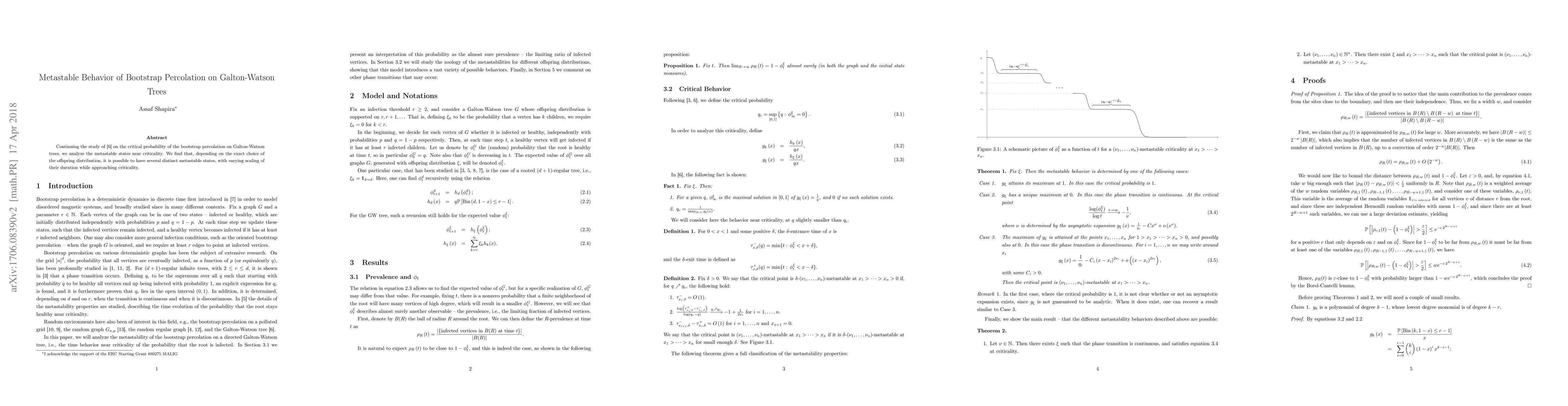 This paper investigates the metastable behavior of bootstrap percolation on Galton-Watson trees, revealing that different offspring distributions can lead to multiple distinct metastable states with varying durations as the system approaches criticality.