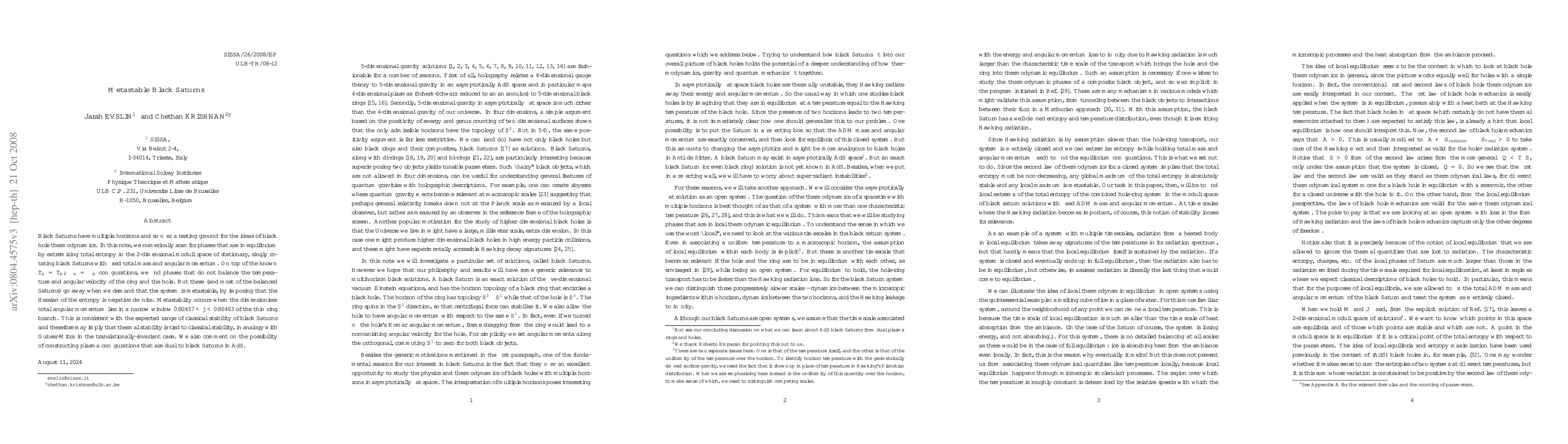 This research numerically explores metastable phases of Black Saturns, finding that certain unbalanced temperature and angular velocity configurations exist when metastability is imposed. Metastability occurs in a narrow dimensionless angular momentum range, potentially linking thermal and classical stability, analogous to previous findings in translationally-invariant cases. The study also discusses possible plasma configurations dual to black Saturns in AdS.