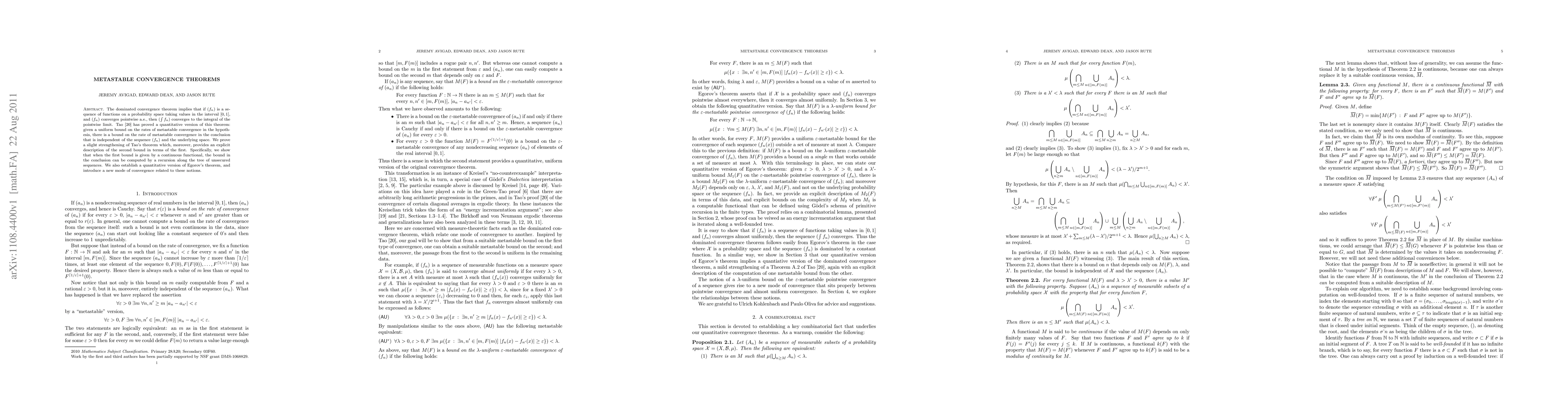 The dominated convergence theorem implies that if (f_n) is a sequence of functions on a probability space taking values in the interval [0,1], and (f_n) converges pointwise a.e., then the sequence of integrals converges to the integral of the pointwise limit. Tao has proved a quantitative version of this theorem: given a uniform bound on the rates of metastable convergence in the hypothesis, there is a bound on the rate of metastable convergence in the conclusion that is independent of the sequence (f_n) and the underlying space. We prove a slight strengthening of Tao's theorem which, moreover, provides an explicit description of the second bound in terms of the first. Specifically, we show that when the first bound is given by a continuous functional, the bound in the conclusion can be computed by a recursion along the tree of unsecured sequences. We also establish a quantitative version of Egorov's theorem, and introduce a new mode of convergence related to these notions.