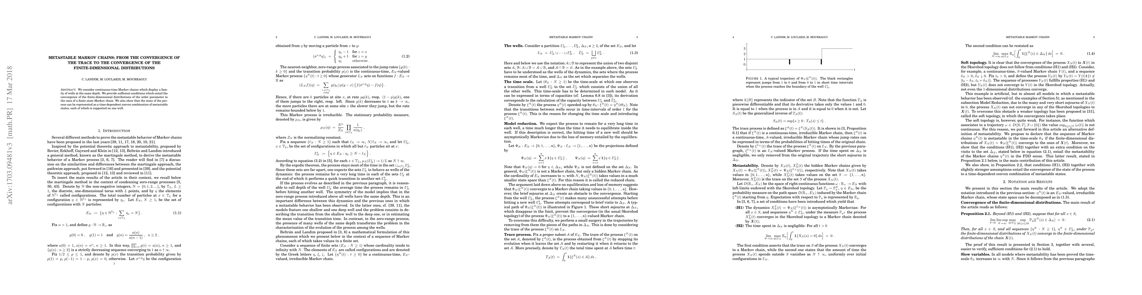 Two-line summary: This paper explores continuous-time Markov chains with multiple metastable states at the same depth, providing conditions for the convergence of their finite-dimensional distributions to those of a finite state Markov chain. It demonstrates that the process state can be modeled as a time-dependent convex combination of these metastable states.