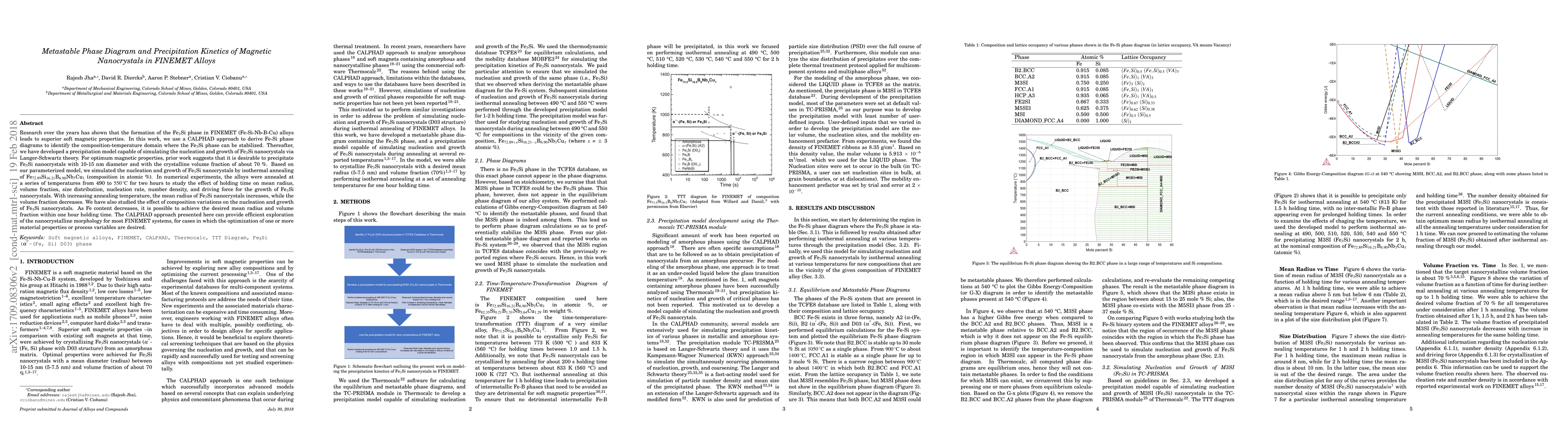 This paper uses a CALPHAD approach to derive Fe-Si phase diagrams for FINEMET alloys, identifying optimal conditions for stabilizing the Fe$_3$Si phase, which enhances magnetic properties. A precipitation model based on Langer-Schwartz theory simulates Fe$_3$Si nanocrystal growth, revealing that higher annealing temperatures increase nanocrystal size but decrease volume fraction.