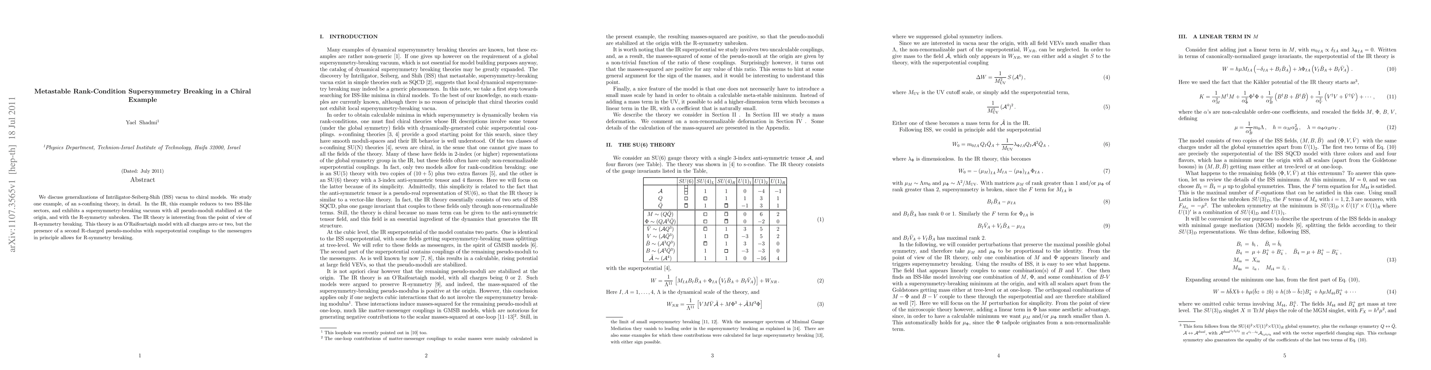 We discuss generalizations of Intriligator-Seiberg-Shih (ISS) vacua to chiral models. We study one example, of an s-confining theory, in detail. In the IR, this example reduces to two ISS-like sectors, and exhibits a supersymmetry-breaking vacuum with all pseudo-moduli stabilized at the origin, and with the R-symmetry unbroken. The IR theory is interesting from the point of view of R-symmetry breaking. This theory is an O'Raifeartaigh model with all charges zero or two, but the presence of a second R-charged pseudo-modulus with superpotential couplings to the messengers in principle allows for R-symmetry breaking.