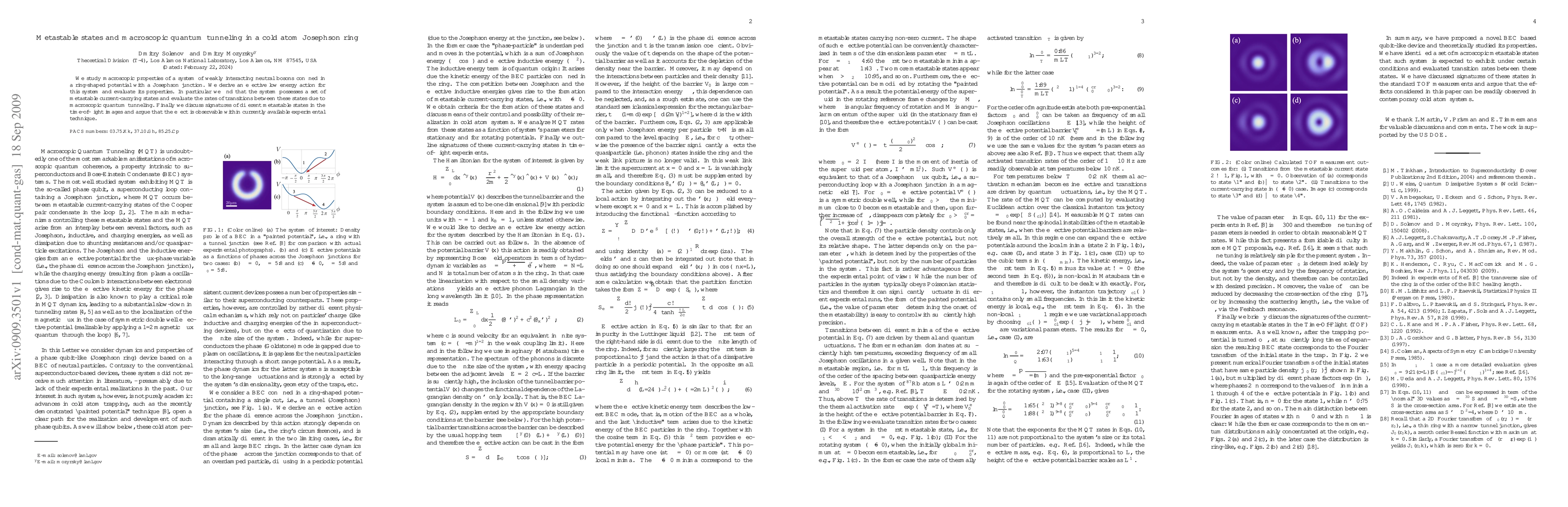 This paper investigates a system of cold bosons in a ring with a Josephson junction, deriving an effective low energy action and identifying metastable current-carrying states. It evaluates the rates of quantum tunneling transitions between these states and discusses observable signatures in time-of-flight images, suggesting the effect can be detected with current experimental techniques.