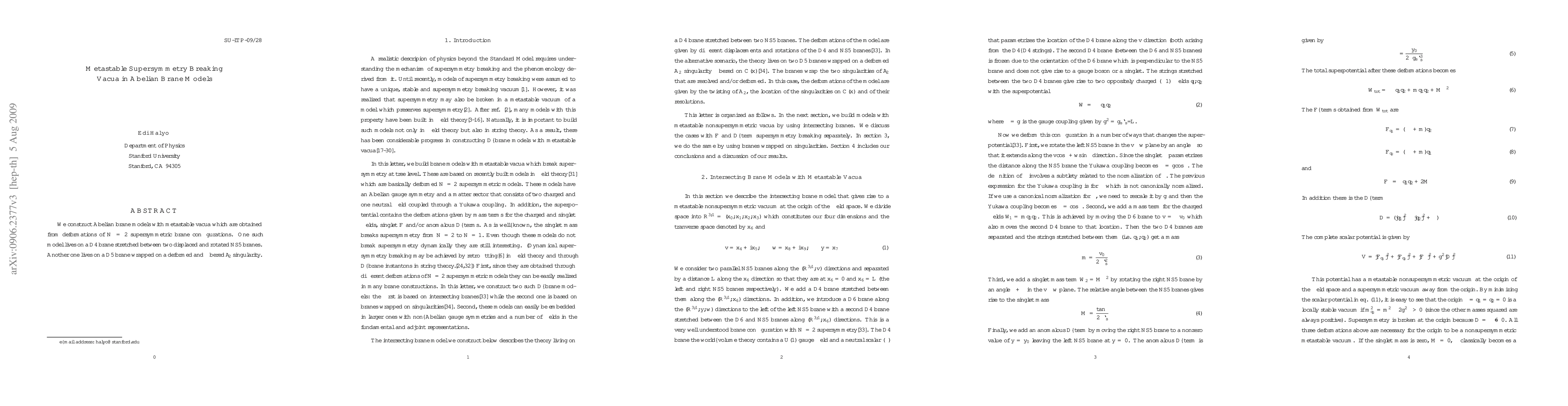 We construct Abelian brane models with metastable vacua which are obtained from deformations of ${\cal N}=2$ supersymmetric brane configurations. One such model lives on a D4 brane stretched between two displaced and rotated NS5 branes. Another one lives on a D5 brane wrapped on a deformed and fibered $A_2$ singularity.