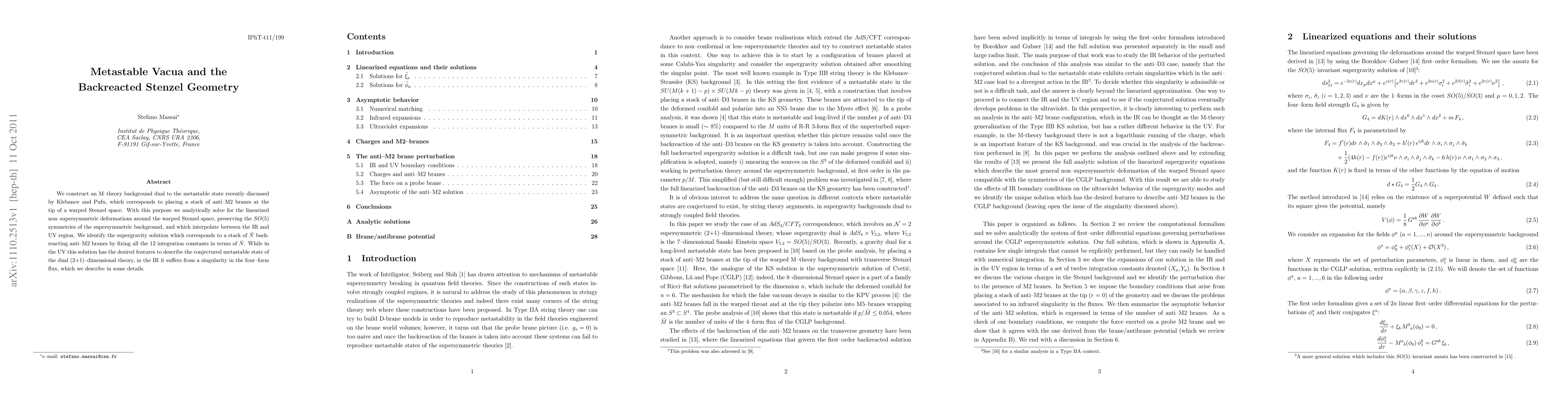 Researchers created an M-theory background that mimics a metastable state, using a warped Stenzel space with backreacting anti-M2 branes. The solution has desirable features in the UV but suffers from a singularity in the IR region.