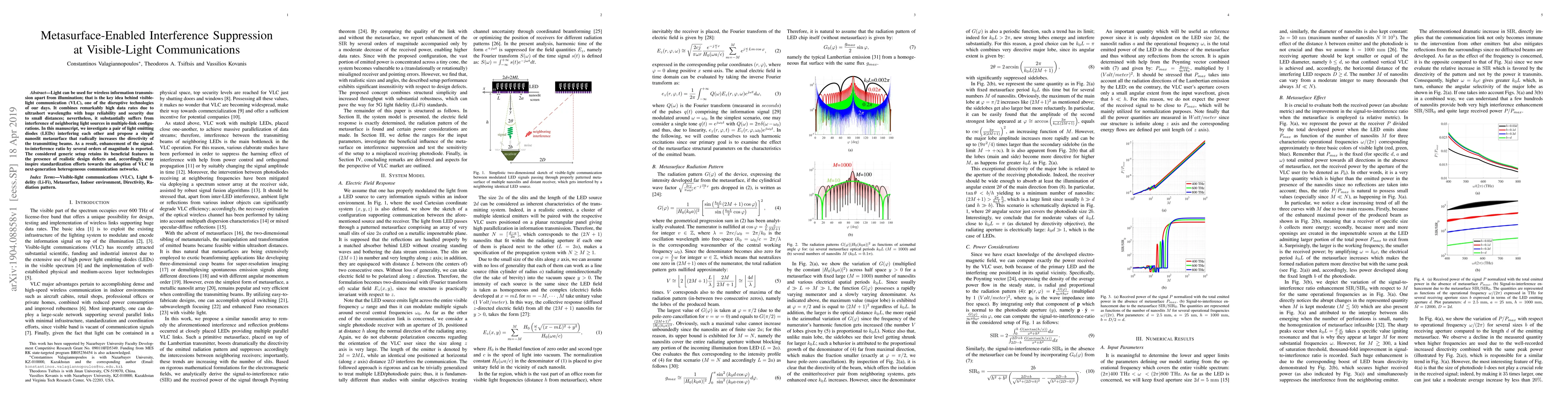 This paper proposes a nanoslit metasurface to enhance the directivity of visible-light communication (VLC) signals, significantly improving the signal-to-interference ratio and addressing interference issues in multiple-link configurations. The proposed solution is robust to design defects and could facilitate the standardization of VLC in future communication networks.