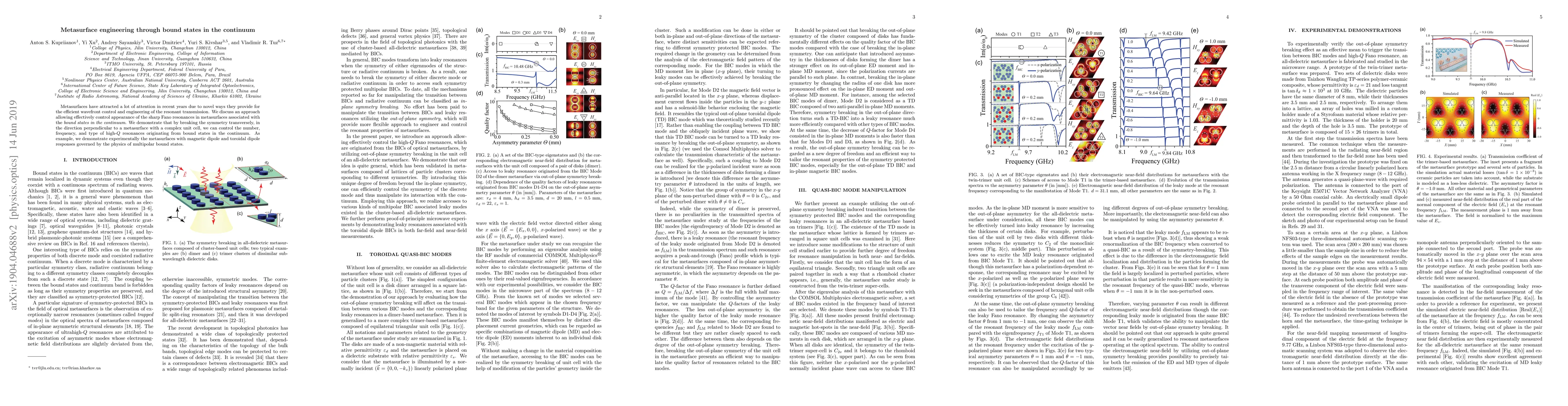 This paper explores metasurface engineering by manipulating bound states in the continuum to control sharp Fano resonances. By breaking transverse symmetry in metasurface unit cells, researchers can effectively manage the number, frequency, and type of high-$Q$ resonances, exemplified by magnetic and toroidal dipole responses.