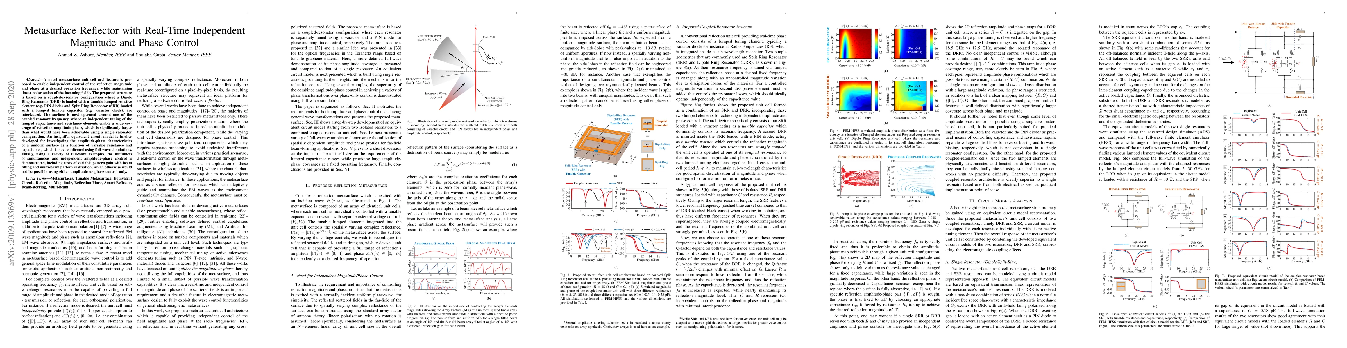 This paper proposes a novel metasurface unit cell that allows independent control of reflection magnitude and phase through a coupled-resonator configuration with tunable resistive and capacitive elements. The design enables a wide range of amplitude-phase coverage, demonstrating applications such as variable pattern gain and multi-beam formation.