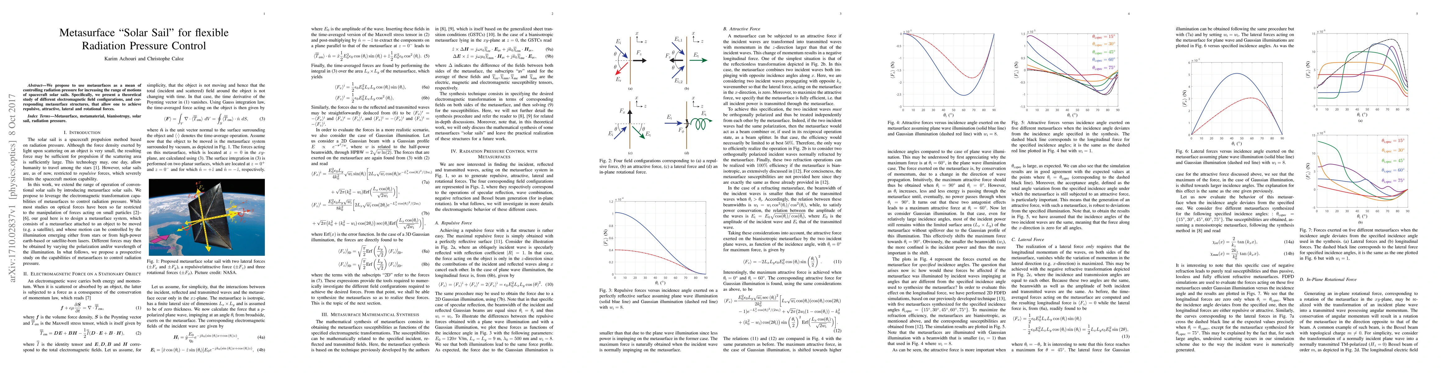 We propose to use metasurfaces as a mean of controlling radiation pressure for increasing the range of motions of spacecraft solar sails. Specifically, we present a theoretical study of different electromagnetic field configurations, and corresponding metasurface structures, that allow one to achieve repulsive, attractive, lateral and rotational forces.
