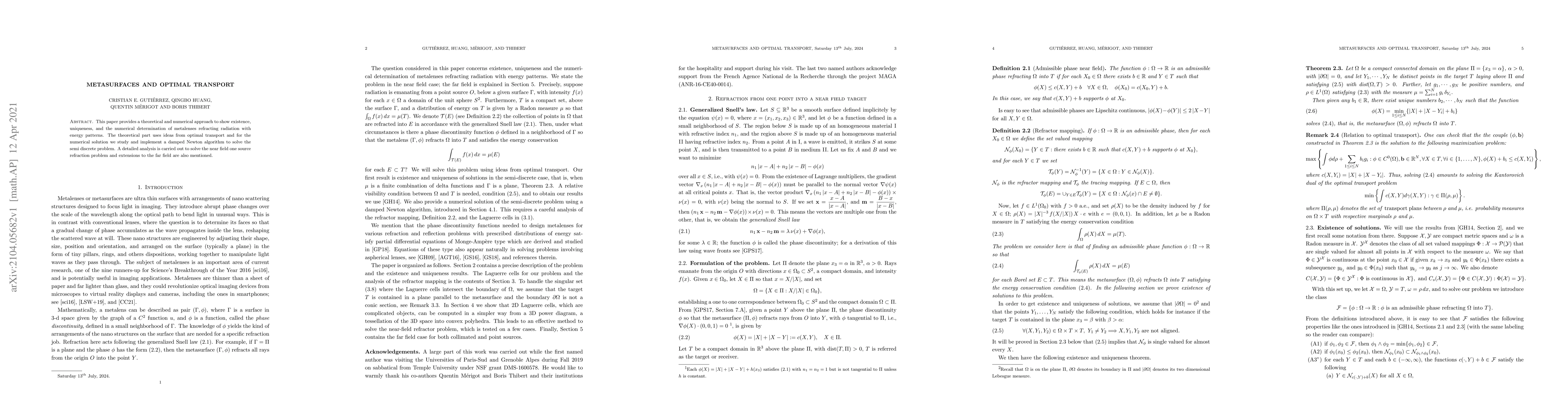 This paper provides a theoretical and numerical approach to show existence, uniqueness, and the numerical determination of metalenses refracting radiation with energy patterns. The theoretical part uses ideas from optimal transport and for the numerical solution we study and implement a damped Newton algorithm to solve the semi discrete problem. A detailed analysis is carried out to solve the near field one source refraction problem and extensions to the far field are also mentioned.