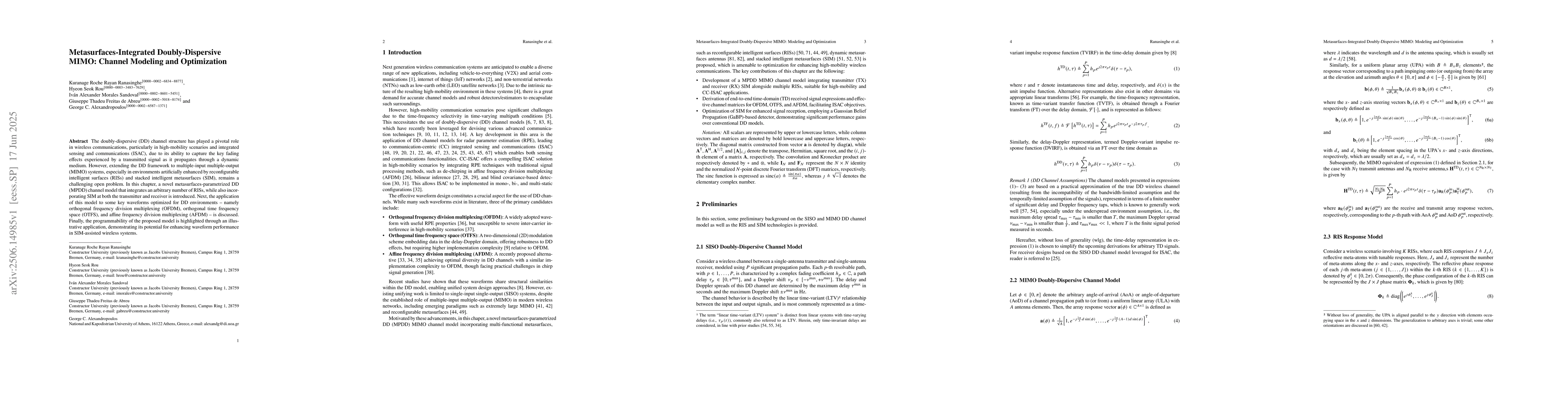 The doubly-dispersive (DD) channel structure has played a pivotal role in wireless communications, particularly in high-mobility scenarios and integrated sensing and communications (ISAC), due to its ability to capture the key fading effects experienced by a transmitted signal as it propagates through a dynamic medium. However, extending the DD framework to multiple-input multiple-output (MIMO) systems, especially in environments artificially enhanced by reconfigurable intelligent surfaces (RISs) and stacked intelligent metasurfaces (SIM), remains a challenging open problem. In this chapter, a novel metasurfaces-parametrized DD (MPDD) channel model that integrates an arbitrary number of RISs, while also incorporating SIM at both the transmitter and receiver is introduced. Next, the application of this model to some key waveforms optimized for DD environments -- namely orthogonal frequency division multiplexing (OFDM), orthogonal time frequency space (OTFS), and affine frequency division multiplexing (AFDM) -- is discussed. Finally, the programmability of the proposed model is highlighted through an illustrative application, demonstrating its potential for enhancing waveform performance in SIM-assisted wireless systems.