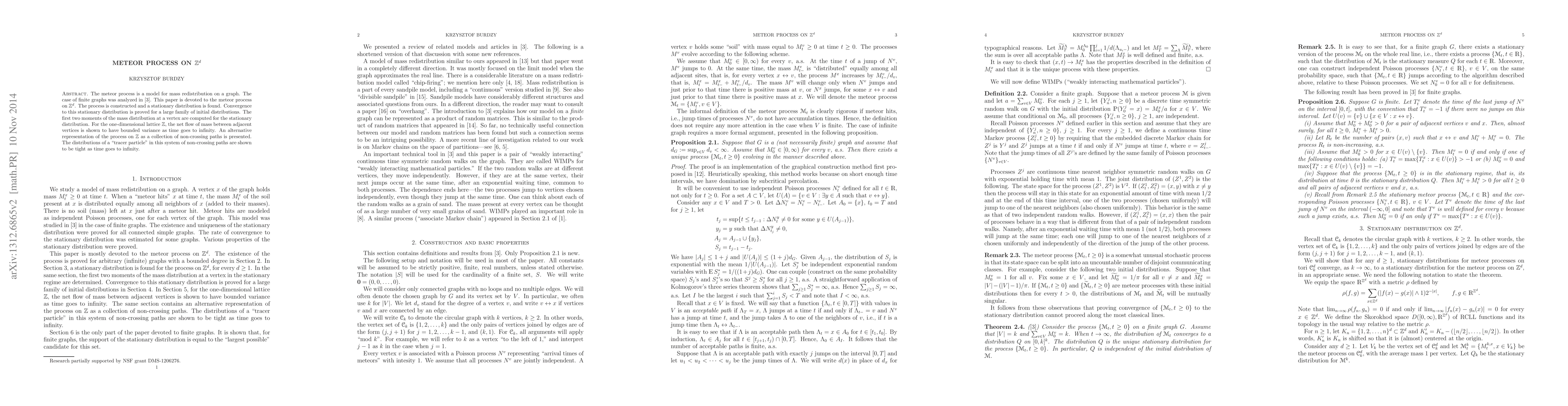 The meteor process is a model for mass redistribution on a graph. The case of finite graphs was analyzed in \cite{BBPS}. This paper is devoted to the meteor process on ${\mathbb Z}^d$. The process is constructed and a stationary distribution is found. Convergence to this stationary distribution is proved for a large family of initial distributions. The first two moments of the mass distribution at a vertex are computed for the stationary distribution. For the one-dimensional lattice ${\mathbb Z}$, the net flow of mass between adjacent vertices is shown to have bounded variance as time goes to infinity. An alternative representation of the process on ${\mathbb Z}$ as a collection of non-crossing paths is presented. The distributions of a "tracer particle" in this system of non-crossing paths are shown to be tight as time goes to infinity.