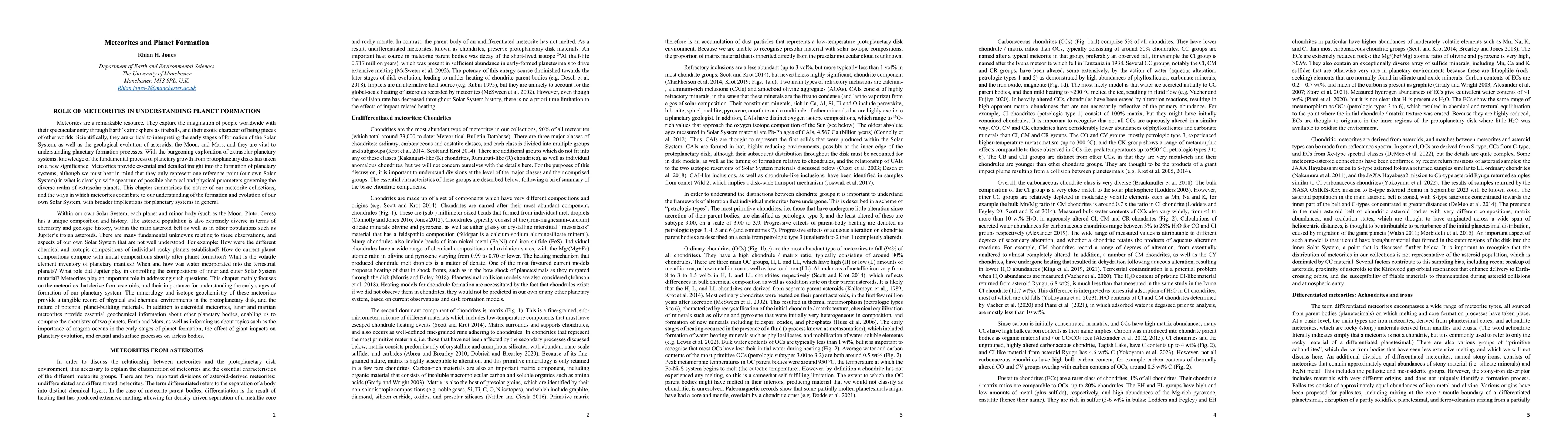 This paper highlights the crucial role of meteorites in understanding the early formation stages of the Solar System and planetary evolution, emphasizing their insights into the processes of planetary growth and the broader implications for extrasolar planetary systems. Despite representing only one point of reference, meteorites offer essential information on the diverse mechanisms governing planetary formation.