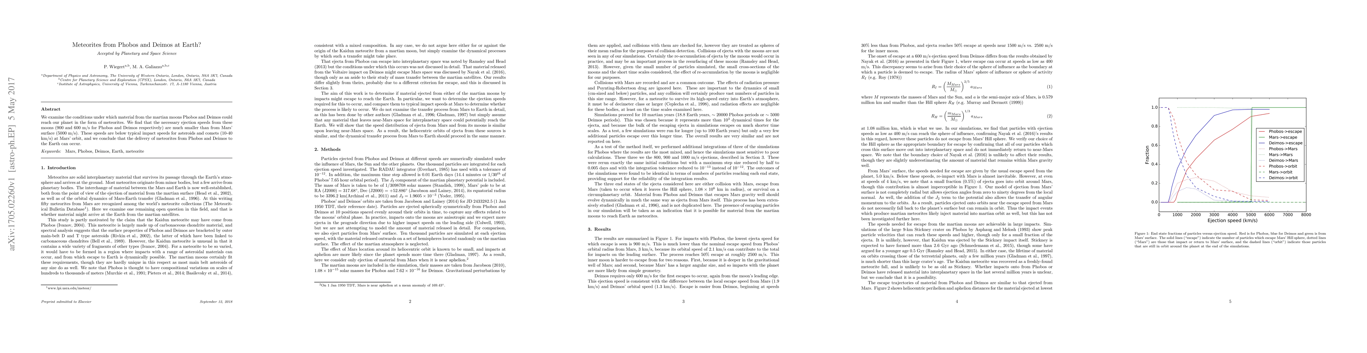 Material from Martian moons Phobos and Deimos can reach Earth at much lower speeds than those of typical asteroids and comets, suggesting a possible delivery route for meteorites.
