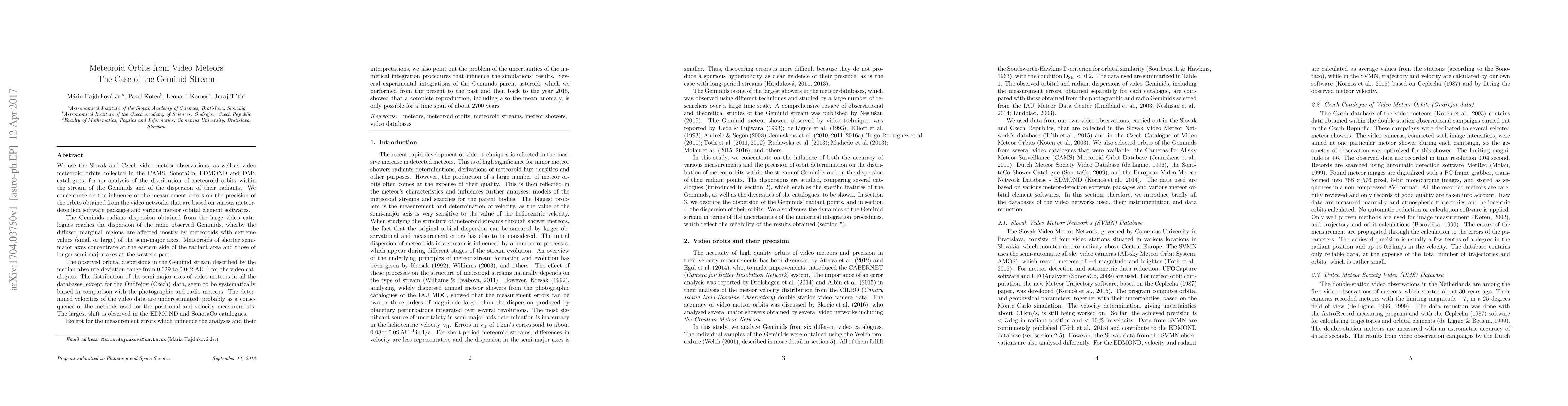 This paper analyzes the orbits of Geminid meteoroids using video observations and catalogues, focusing on measurement errors and dispersions. The study finds significant orbital dispersions and biases in video data compared to photographic and radio meteors, likely due to measurement methods and uncertainties in numerical integration procedures.