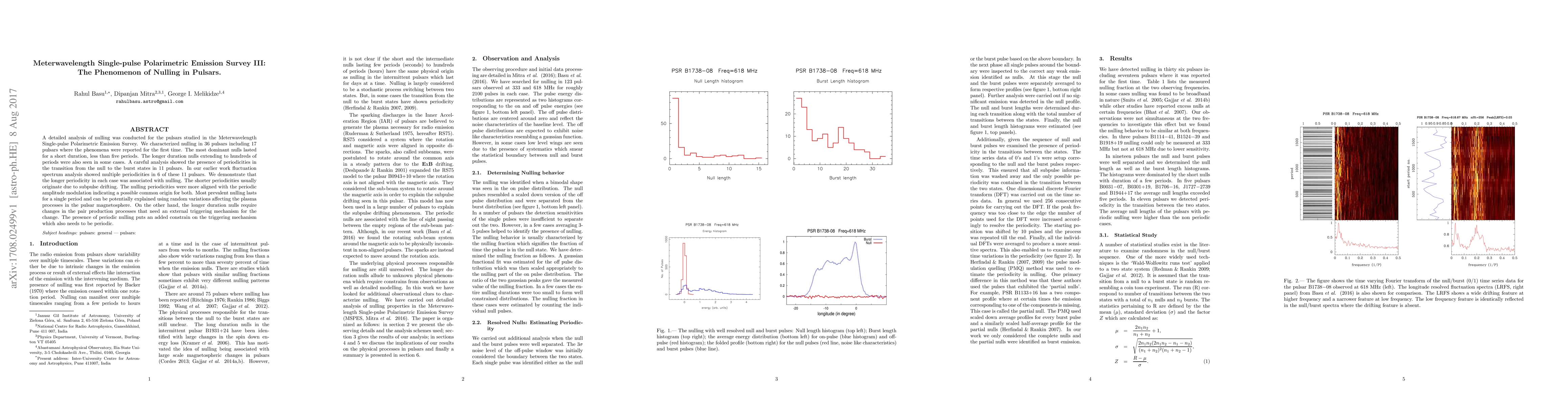 Researchers analyzed nulling in 36 pulsars, discovering that short-duration nulls are most common and can be explained by random plasma processes, while longer duration nulls require changes in pair production processes with a periodic triggering mechanism.