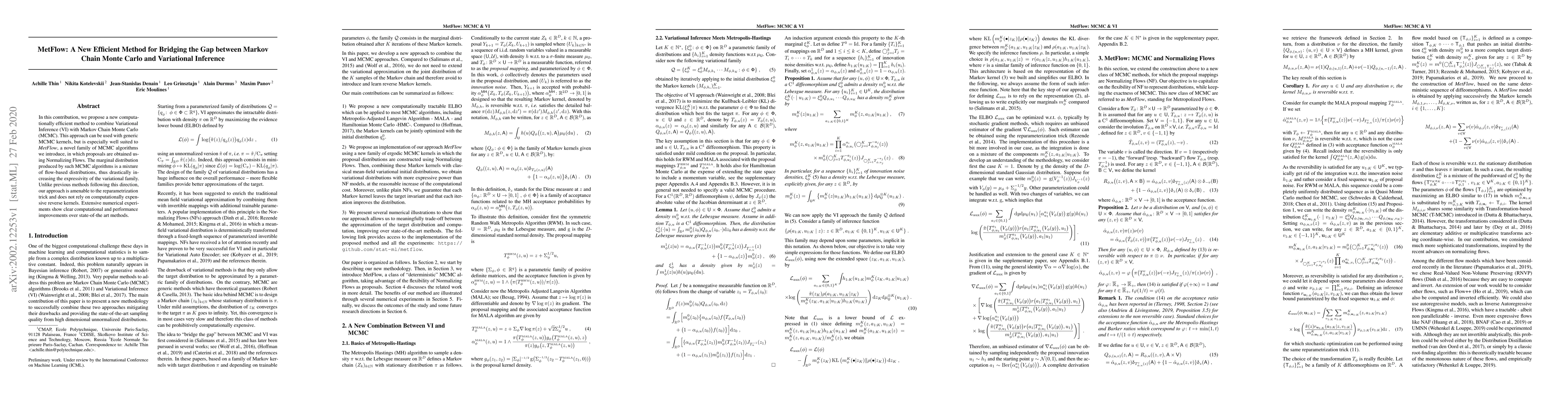 This paper introduces MetFlow, a new efficient method that merges Variational Inference with Markov Chain Monte Carlo, leveraging Normalizing Flows for MCMC proposals. Unlike previous methods, it avoids costly reverse kernels and is amenable to the reparameterization trick, demonstrating significant computational and performance gains in experiments.
