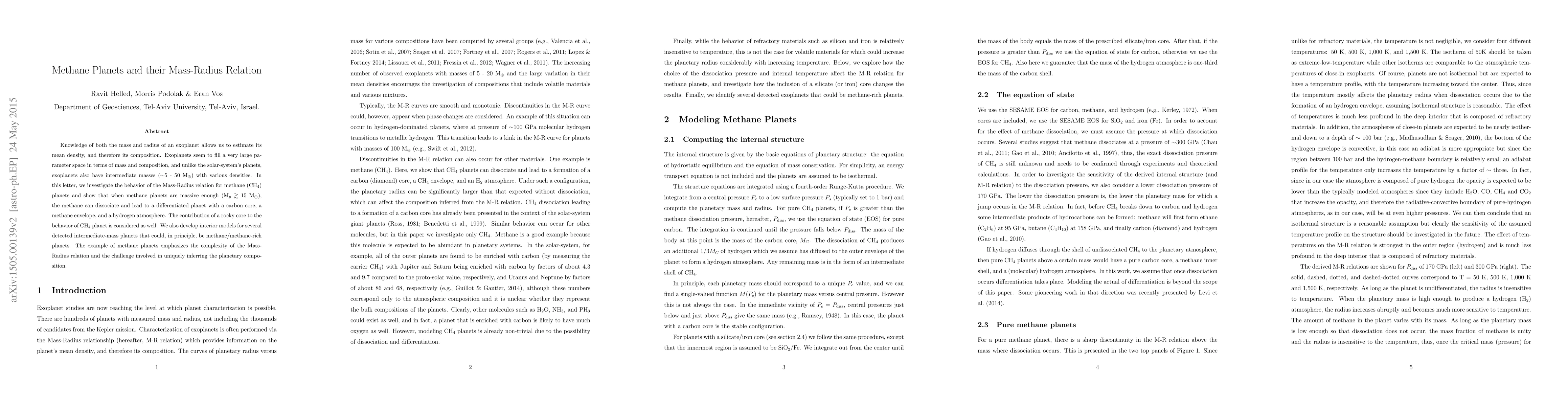 This paper explores the Mass-Radius relation for methane planets, demonstrating that massive methane planets (Mp >~ 15 M_Earth) can dissociate into a differentiated structure with a carbon core, a methane envelope, and a hydrogen atmosphere. It also considers the influence of a rocky core and models several detected intermediate-mass planets that could be methane-rich.