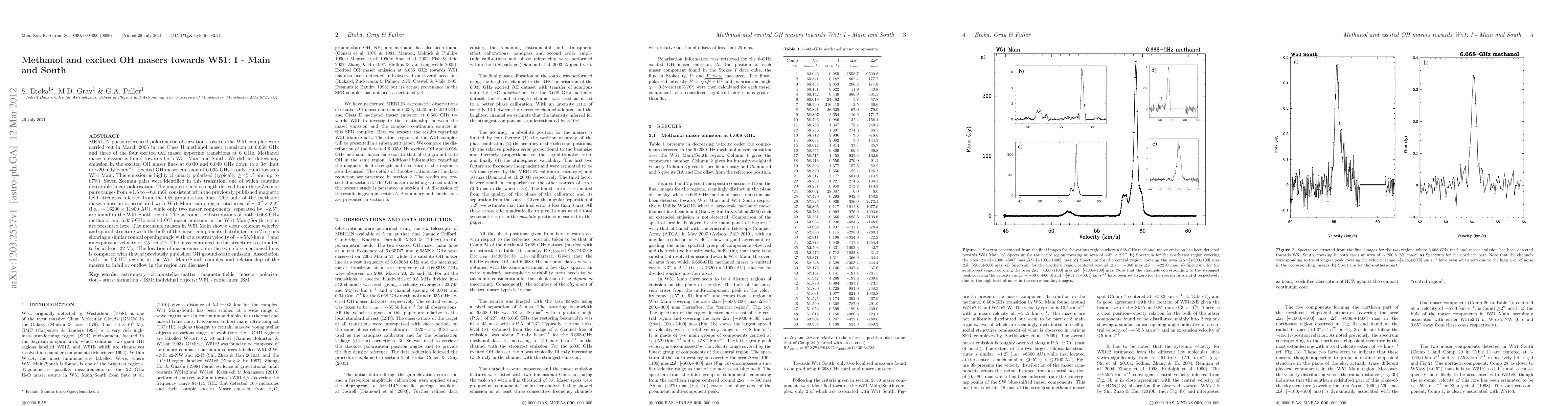 This paper reports on MERLIN observations of methanol and excited OH masers in the W51 complex, finding methanol masers in both W51 Main and South, while only detecting excited OH masers in W51 Main. The study reveals a coherent velocity and spatial structure in the methanol masers, estimating a mass of at least 22 solar masses.