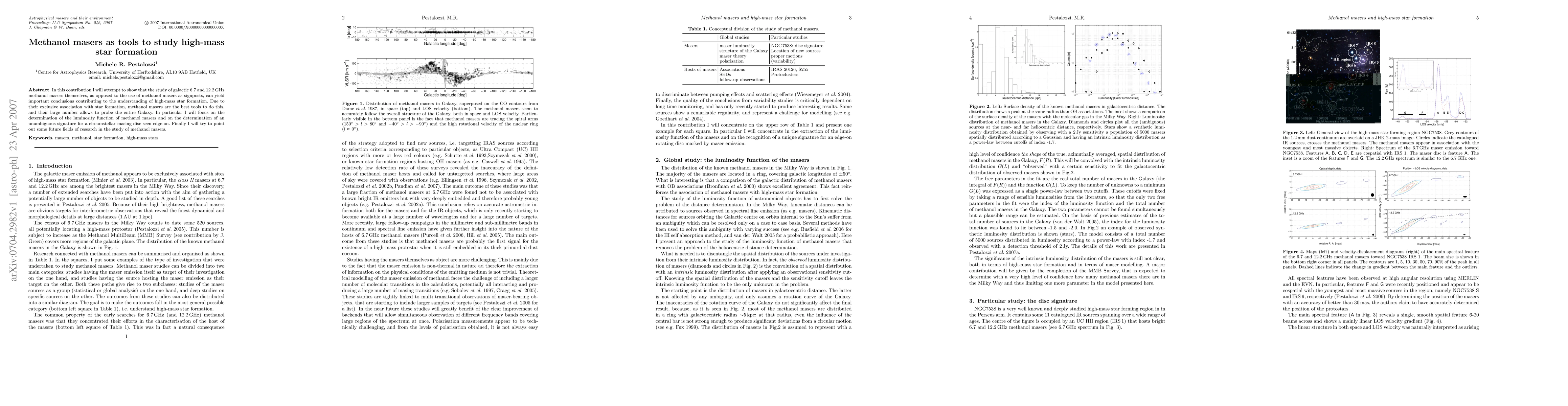 This paper explores methanol masers at 6.7 and 12.2 GHz as direct tools for studying high-mass star formation, emphasizing their luminosity function and the identification of edge-on circumstellar masing discs. It highlights the potential for future research in this field.