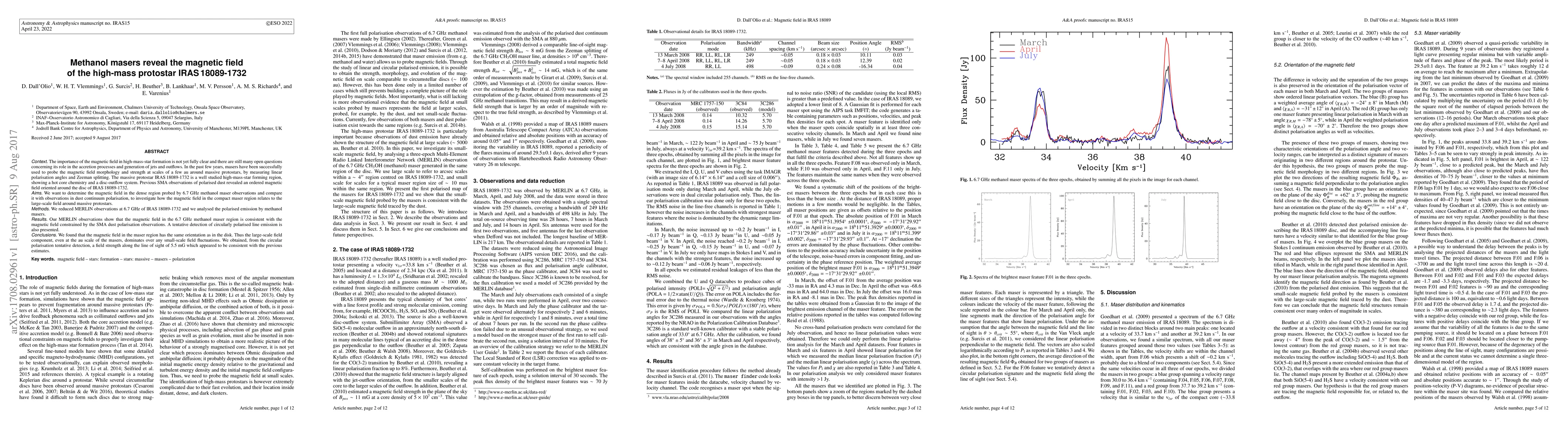 This study uses MERLIN observations at 6.7 GHz of the methanol masers around the high-mass protostar IRAS 18089-1732 to determine the magnetic field in the dense maser region. The findings show that the magnetic field in the maser region aligns with the large-scale field, dominating any small-scale fluctuations, and is consistent with dust polarisation observations. A tentative circular polarisation detection suggests a field strength of 5.5 mG along the line of sight.
