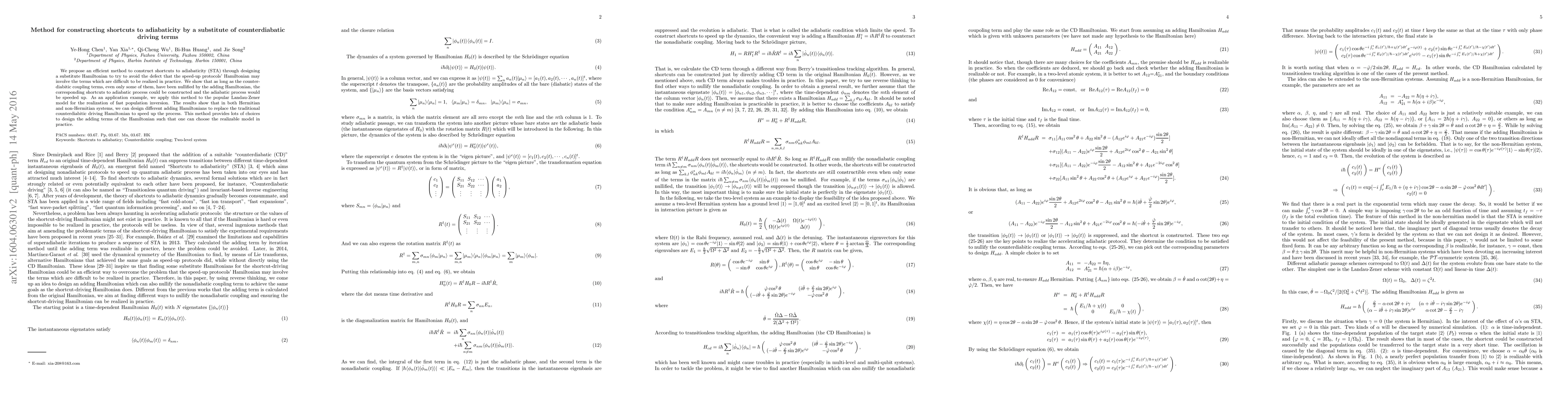 We propose an efficientmethod to construct shortcuts to adiabaticity through designing a substitute Hamiltonian to try to avoid the defect in which the speed-up protocol' Hamiltonian may involve terms which are difficult to realize in practice. We show that as long as the counterdiabatic coupling terms-even only some of them-have been nullified by the additional Hamiltonian, the corresponding shortcuts to the adiabatic process could be constructed and the adiabatic process would be sped up. As an application example, we apply this method to the popular Landau-Zener model for the realization of fast population inversion. The results show that in both Hermitian and non-Hermitian systems, we can design different additional Hamiltonians to replace the traditional counterdiabatic driving Hamiltonian to speed up the process. This method provides many choices for designing additional terms of the Hamiltonian such that one can choose a realizable model in practice.