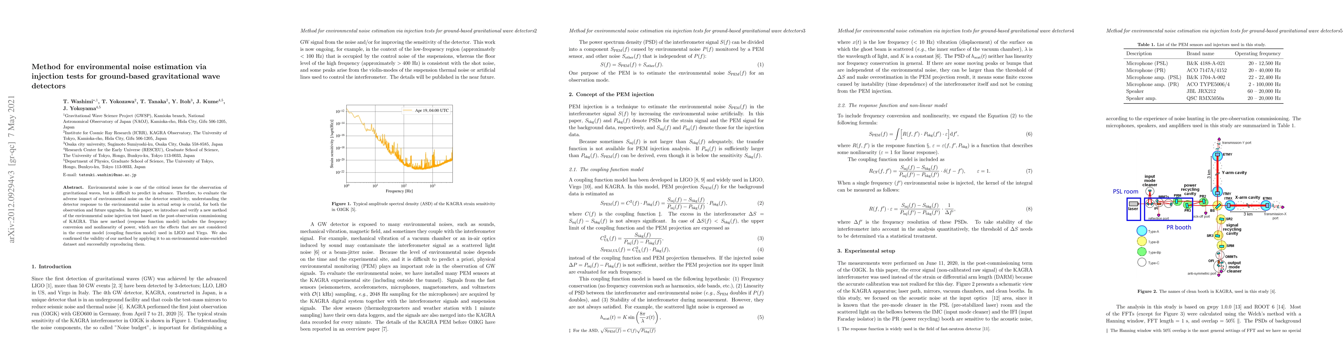 Environmental noise is one of the critical issues for the observation of gravitational waves, but is difficult to predict in advance. Therefore, to evaluate the adverse impact of environmental noise on the detector sensitivity, understanding the detector response to the environmental noise in actual setup is crucial, for both the observation and future upgrades. In this paper, we introduce and verify a new method of the environmental noise injection test based on the post-observation commissioning of KAGRA. This new method (response function model) includes the frequency conversion and nonlinearity of power, which are the effects that are not considered in the current model (coupling function model) used in LIGO and Virgo. We also confirmed the validity of our method by applying it to an environmental noise-enriched dataset and successfully reproducing them.