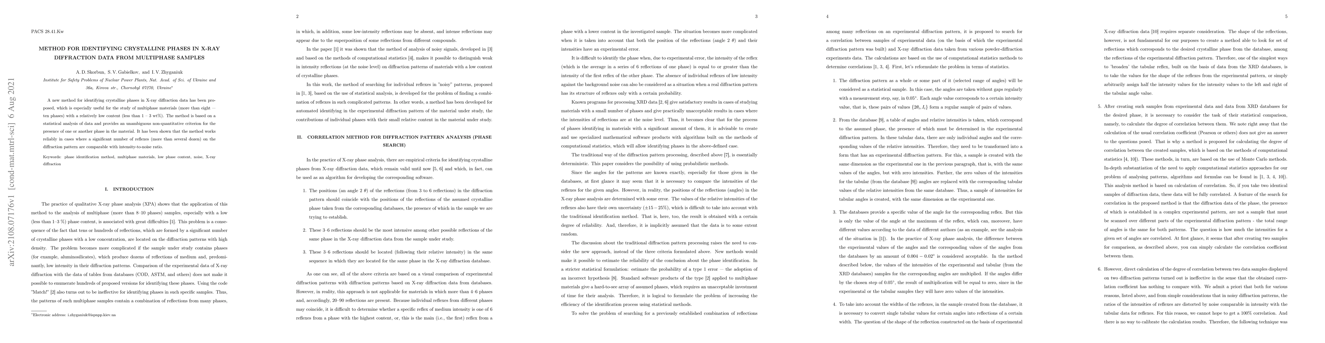 This paper proposes a new statistical method for identifying crystalline phases in X-ray diffraction data from multiphase samples, especially useful for materials with low phase concentrations. The method provides a reliable non-quantitative criterion for phase identification, working effectively when numerous diffraction reflexes are present.