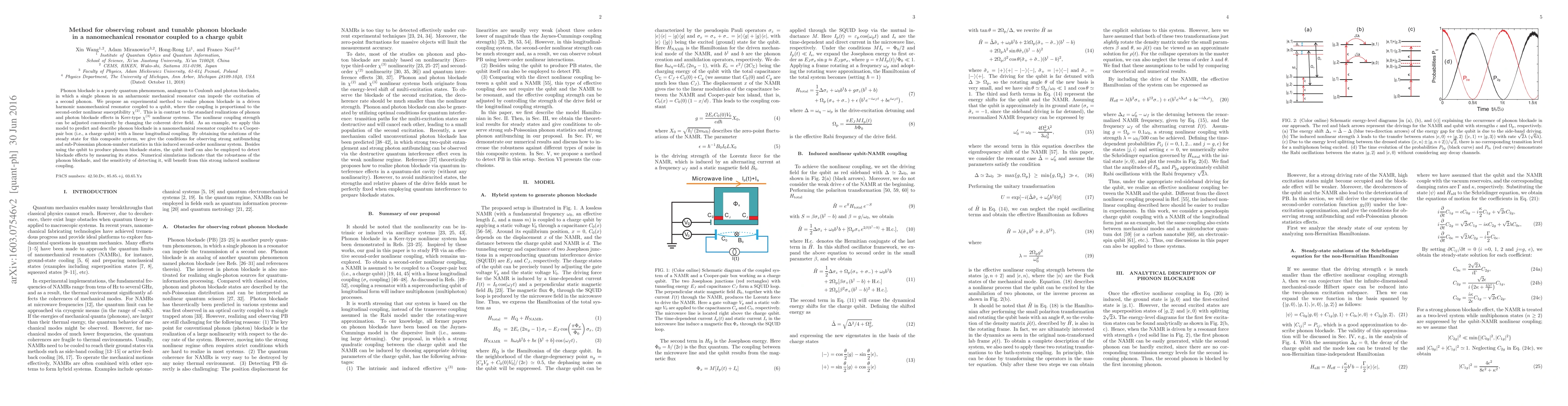 This paper proposes a method to observe phonon blockade in a nanomechanical resonator coupled to a charge qubit via second-order nonlinear susceptibility, contrasting with traditional Kerr-type systems. The method demonstrates strong antibunching and sub-Poissonian phonon statistics, with robustness enhanced by the tunable coupling strength.