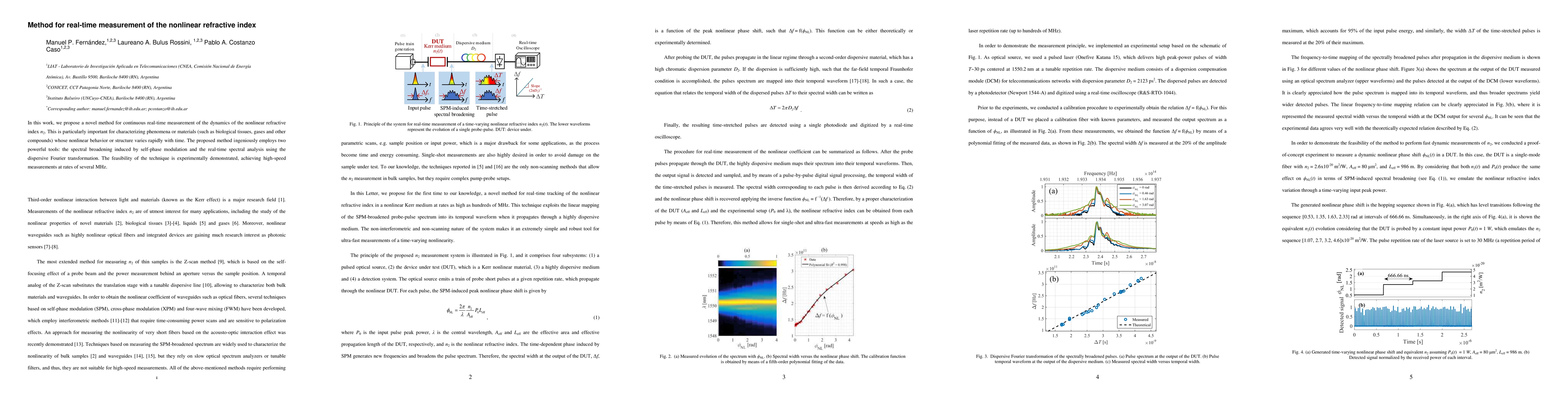 In this work, we propose a novel method for continuous real-time measurement of the dynamics of the nonlinear refractive index n2. This is particularly important for characterizing phenomena or materials (such as biological tissues, gases and other compounds) whose nonlinear behavior or structure varies rapidly with time. The proposed method ingeniously employs two powerful tools: the spectral broadening induced by self-phase modulation and the real-time spectral analysis using the dispersive Fourier transformation. The feasibility of the technique is experimentally demonstrated, achieving high-speed measurements at rates of several MHz.