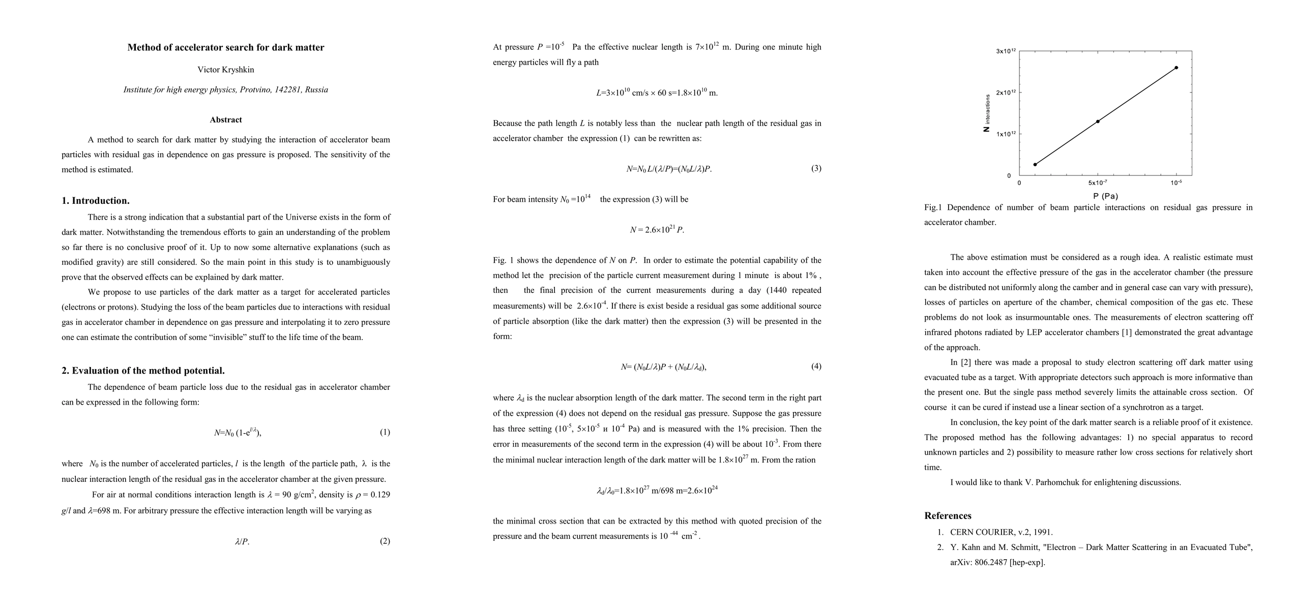 This paper proposes a novel method to search for dark matter by analyzing the interaction of accelerator beam particles with residual gas at varying pressures, and estimates the sensitivity of this approach.
