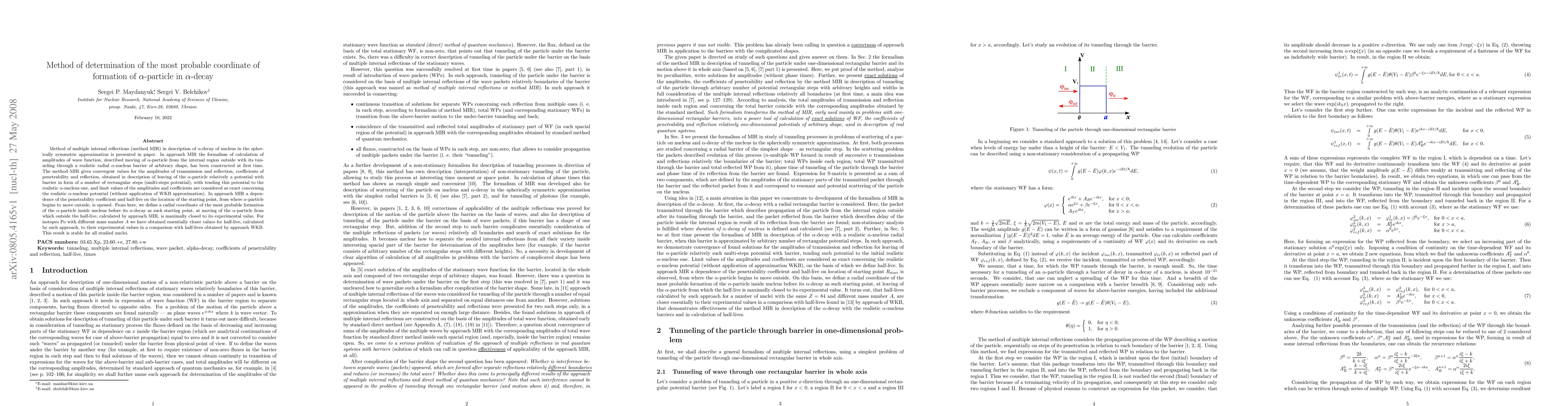 The paper introduces the Method of Multiple Internal Reflections (MIR) to describe $\alpha$-decay in a spherically symmetric approximation, providing a novel formalism for calculating $\alpha$-particle tunneling through a realistic radial barrier. The MIR method yields convergent values for transmission and reflection amplitudes, leading to a determination of the most probable radial coordinate for $\alpha$-particle formation inside the nucleus, which closely matches experimental half-lives for various polonium isotopes.