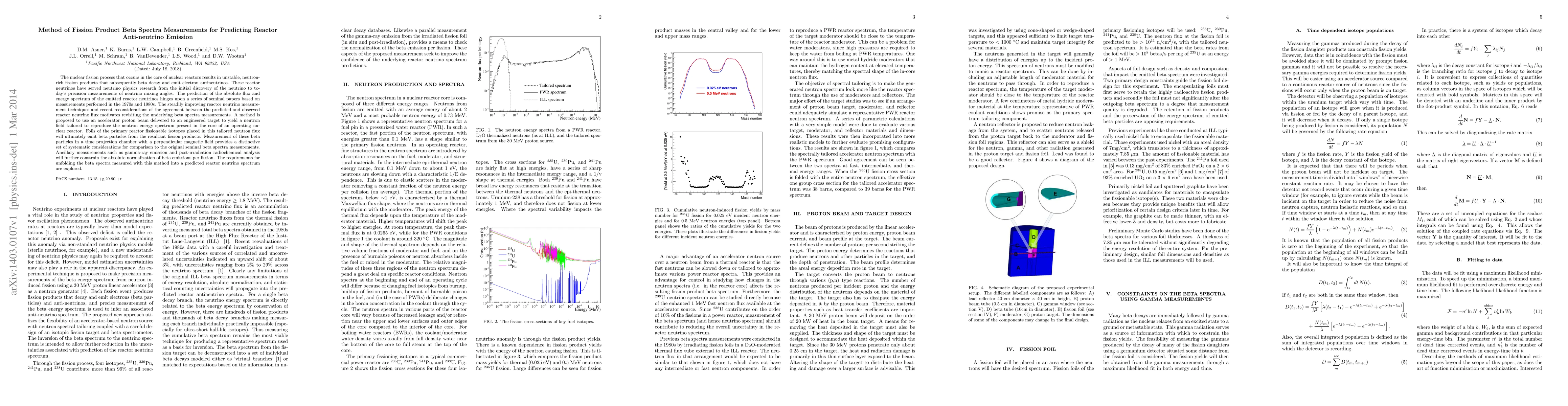 This paper proposes a method to measure fission product beta spectra using an accelerator proton beam to simulate neutron conditions in a nuclear reactor, aiming to improve predictions of reactor anti-neutrino emission. The method involves placing reactor fissionable isotopes in a tailored neutron field and measuring beta particles in a time projection chamber, supplemented by gamma-ray and radiochemical analyses to refine the predictions.
