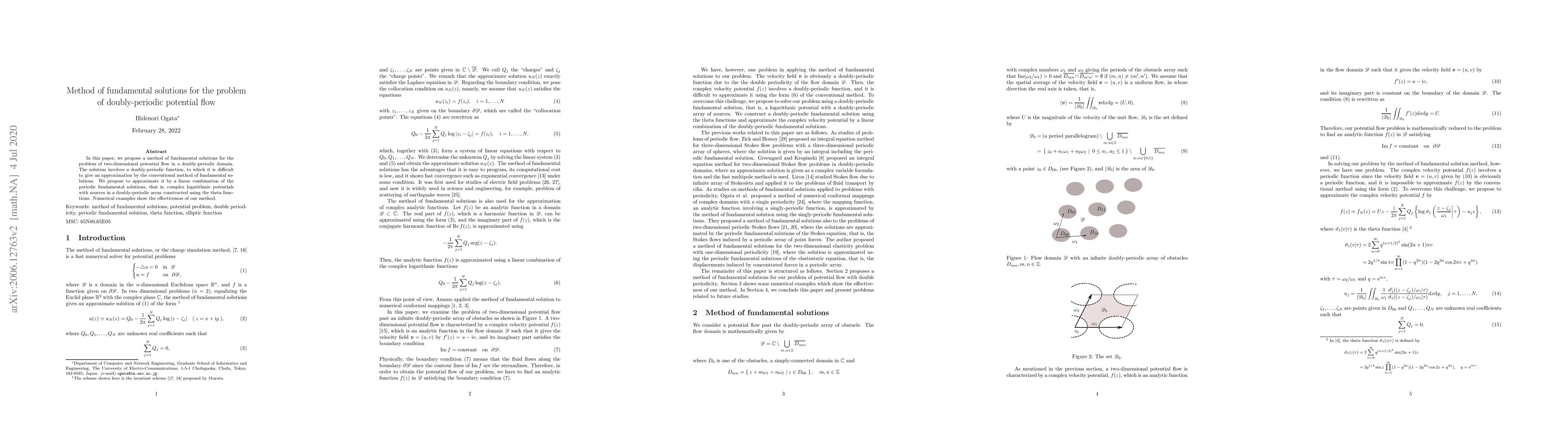 This paper proposes a method of fundamental solutions for two-dimensional potential flow in doubly-periodic domains using a linear combination of periodic fundamental solutions based on theta functions. Numerical examples demonstrate the effectiveness of this novel approach.
