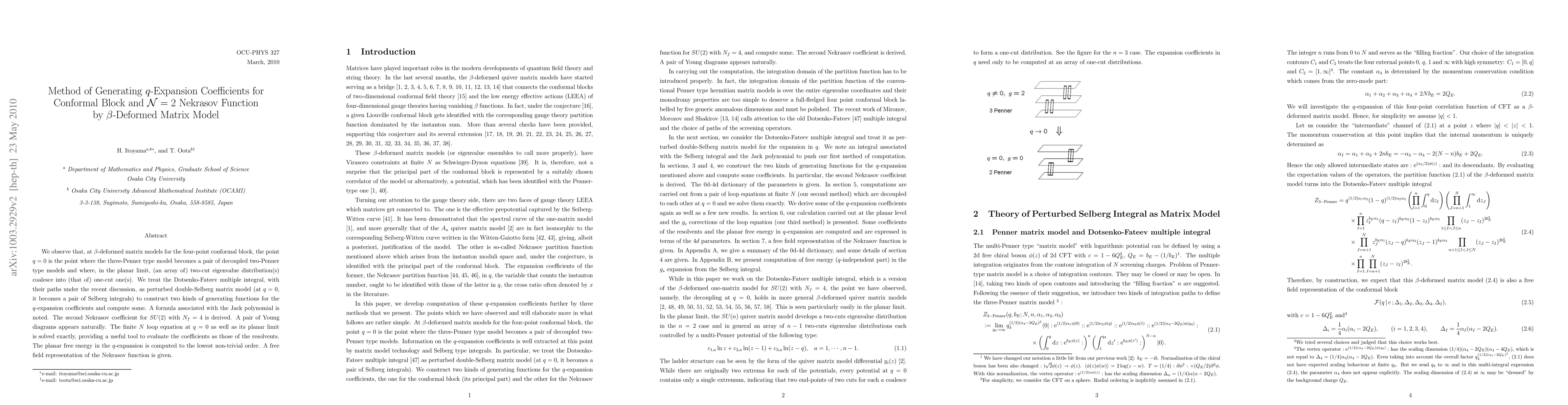 Researchers develop a method to generate q-expansion coefficients for conformal block and N=2 Nekrasov functions using a beta-deformed matrix model, solving the finite N loop equation exactly and computing the planar free energy to lowest non-trivial order.