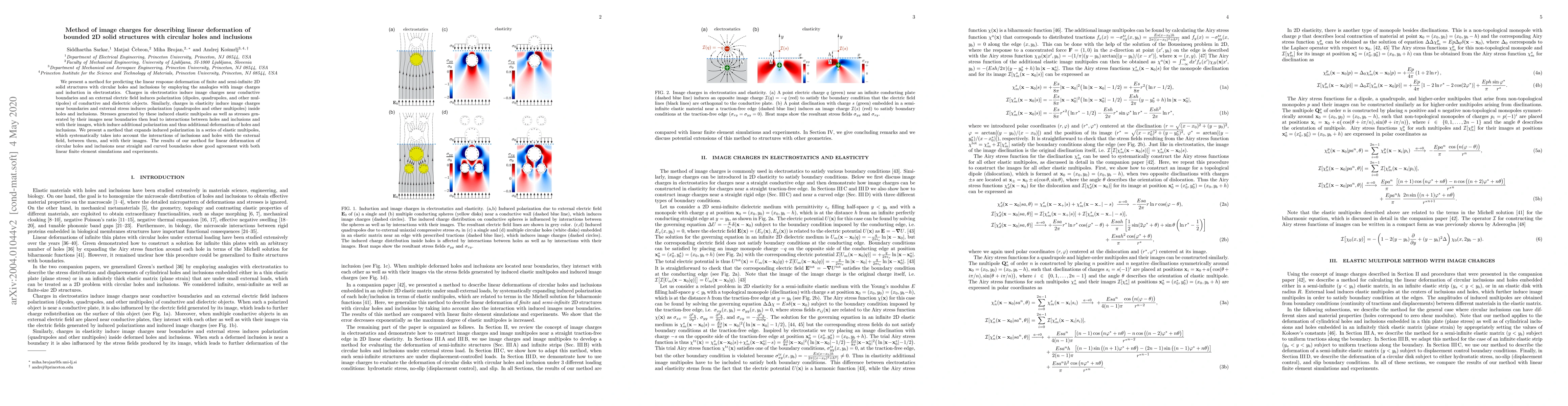 We present a method for predicting the linear response deformation of finite and semi-infinite 2D solid structures with circular holes and inclusions by employing the analogies with image charges and induction in electrostatics. Charges in electrostatics induce image charges near conductive boundaries and an external electric field induces polarization (dipoles, quadrupoles, and other multipoles) of conductive and dielectric objects. Similarly, charges in elasticity induce image charges near boundaries and external stress induces polarization (quadrupoles and other multipoles) inside holes and inclusions. Stresses generated by these induced elastic multipoles as well as stresses generated by their images near boundaries then lead to interactions between holes and inclusions and with their images, which induce additional polarization and thus additional deformation of holes and inclusions. We present a method that expands induced polarization in a series of elastic multipoles, which systematically takes into account the interactions of inclusions and holes with the external field, between them, and with their images. The results of our method for linear deformation of circular holes and inclusions near straight and curved boundaries show good agreement with both linear finite element simulations and experiments.