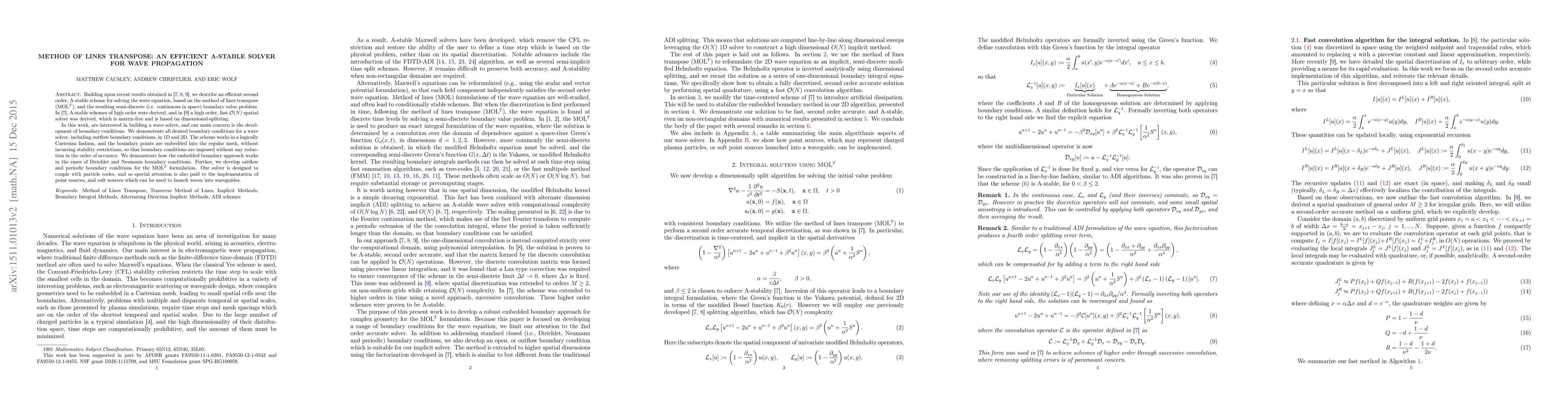 This paper presents an efficient second-order, A-stable solver for wave propagation using the method of lines transpose (MOL$^T$), focusing on developing appropriate boundary conditions. The proposed scheme integrates well with particle codes and supports various boundary conditions without compromising accuracy.