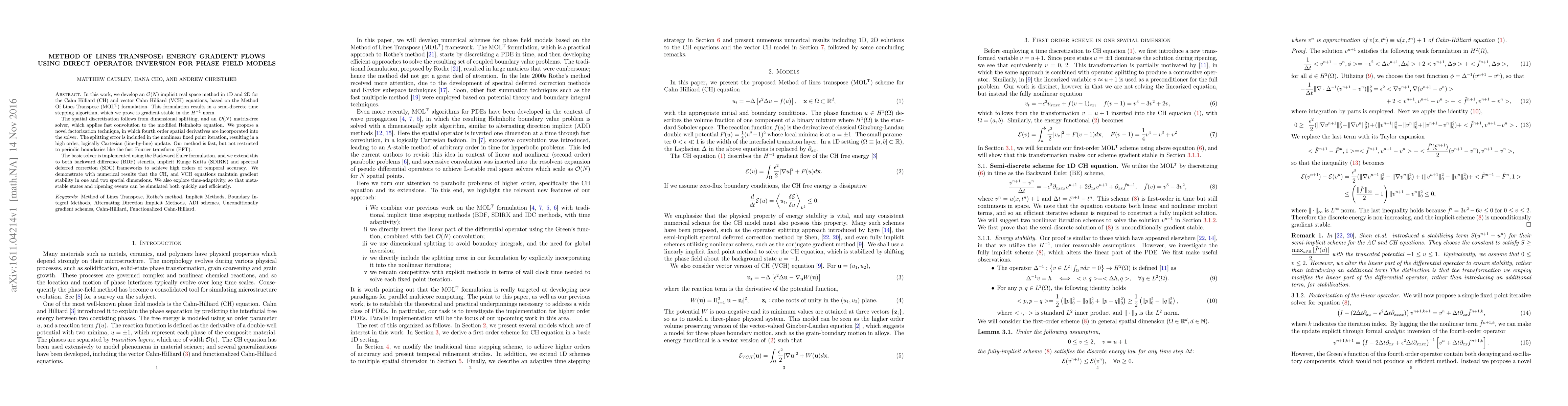 In this work, we develop an $\mathcal{O}(N)$ implicit real space method in 1D and 2D for the Cahn Hilliard (CH) and vector Cahn Hilliard (VCH) equations, based on the Method Of Lines Transpose (MOL$^\text{T}$) formulation. This formulation results in a semi-discrete time stepping algorithm, which we prove is gradient stable in the $H^{-1}$ norm. The spatial discretization follows from dimensional splitting, and an $\mathcal{O}(N)$ matrix-free solver, which applies fast convolution to the modified Helmholtz equation. We propose a novel factorization technique, in which fourth order spatial derivatives are incorporated into the solver. The splitting error is included in the nonlinear fixed point iteration, resulting in a high order, logically Cartesian (line-by-line) update. Our method is fast, but not restricted to periodic boundaries like the fast Fourier transform (FFT). The basic solver is implemented using the Backward Euler formulation, and we extend this to both backward difference (BDF) stencils, implicit Runge Kutta (SDIRK) and spectral deferred correction (SDC) frameworks to achieve high orders of temporal accuracy. We demonstrate with numerical results that the CH, and VCH equations maintain gradient stability in one and two spatial dimensions. We also explore time-adaptivity, so that meta-stable states and ripening events can be simulated both quickly and efficiently.