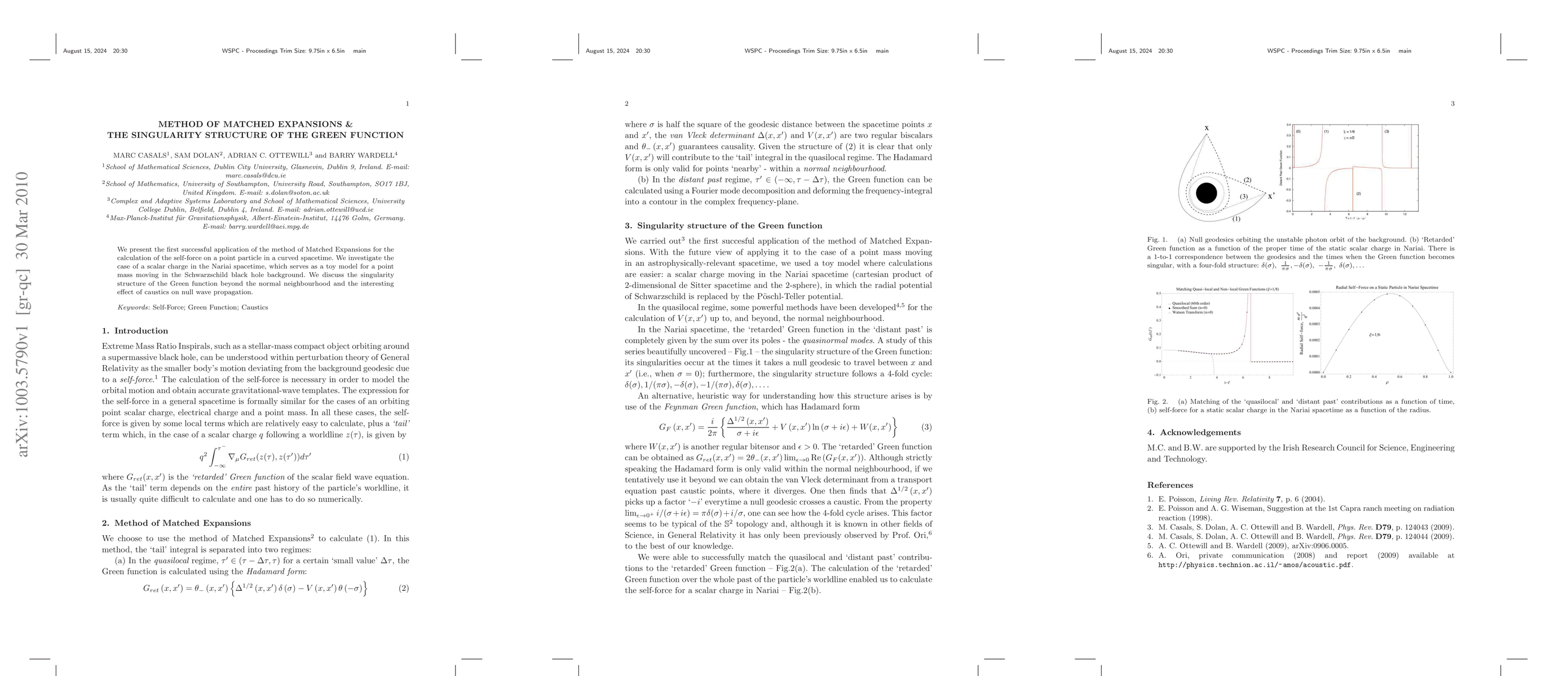 We present the first successful application of the method of Matched Expansions for the calculation of the self-force on a point particle in a curved spacetime. We investigate the case of a scalar charge in the Nariai spacetime, which serves as a toy model for a point mass moving in the Schwarzschild black hole background. We discuss the singularity structure of the Green function beyond the normal neighbourhood and the interesting effect of caustics on null wave propagation.